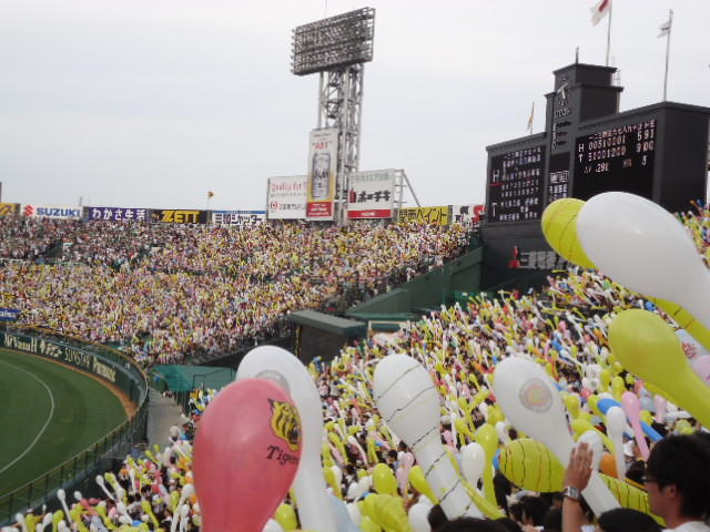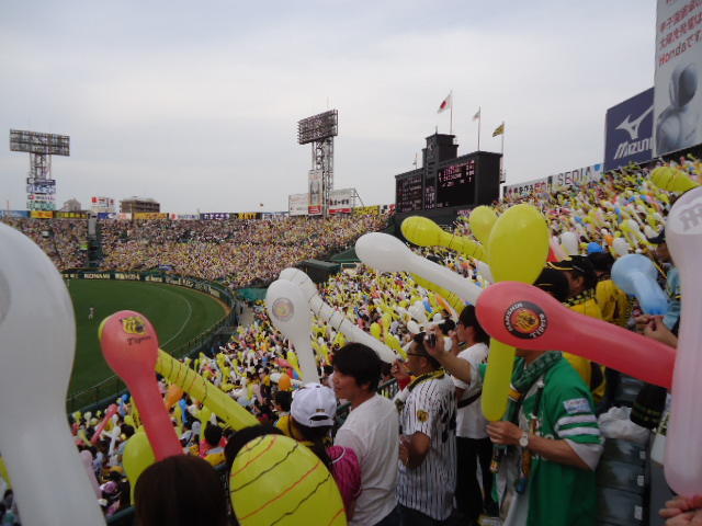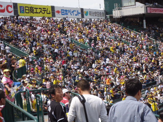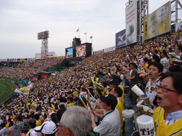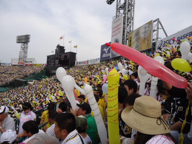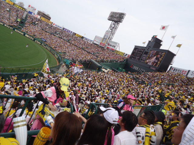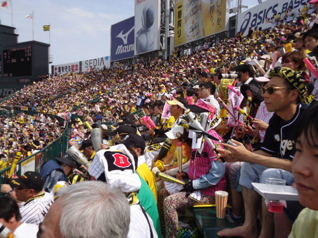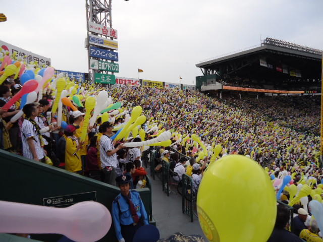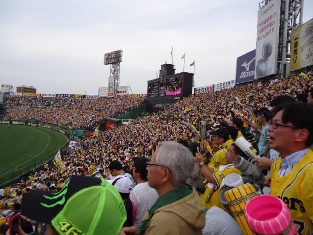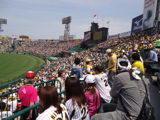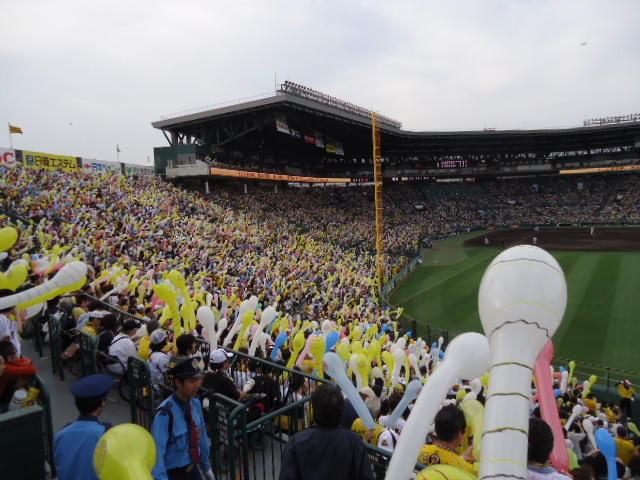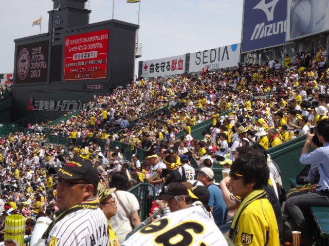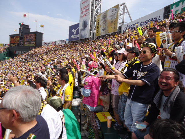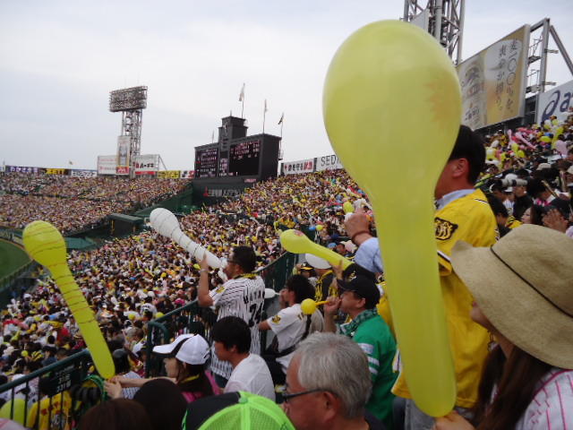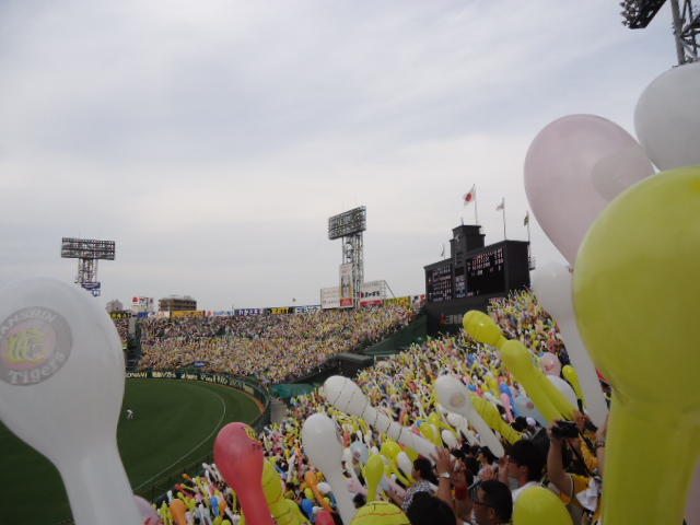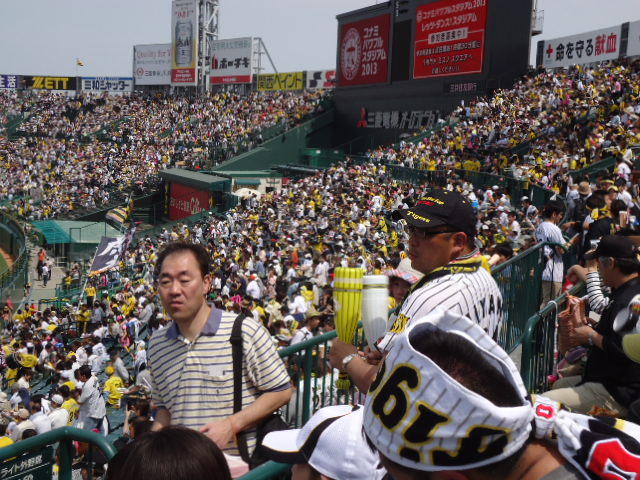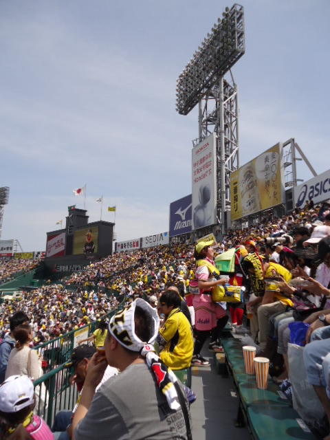 2013年5月、 こんなページ を作ったりして盛り上がり、久しぶりに甲子園に行きました。 先週の 音楽情報科学研究会 に続いて、5週で4回という学会発表シリーズの第2弾、大阪大学でのエンタテイメントコンピューティング研究会で こんな発表 をするように申し込んだのですが、なんと2日目の午前で終了すると判明し、この日の午後の甲子園でのデーゲームのチケットを入手して駆け付けました。 以下、写真または「★」をクリックして別ウインドウで開いた写真を閉じないでおいて、さらにクリックすると、その別ウインドウの中身が変わります。今回は阪神タイガースファンクラブの会員特典のタイガースバッグをダブルで持参。新幹線で新大阪へ、そして千里中央からモノレールにて阪大へ。 ★ ★ ★ ★ ★ ★ ★ ★ ★ ★ ★ ★ ★ ★ ★ ★ ★ ★ ★ ★ ★ ★ ★ ★ ★ ★ ★ ★ ★ ★ ★ ★