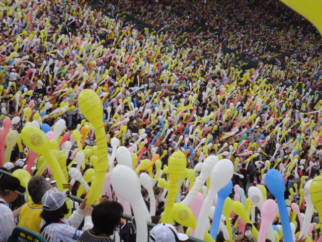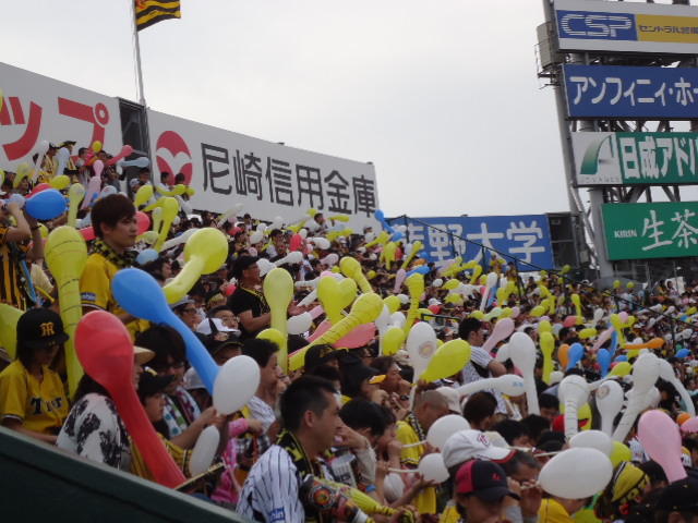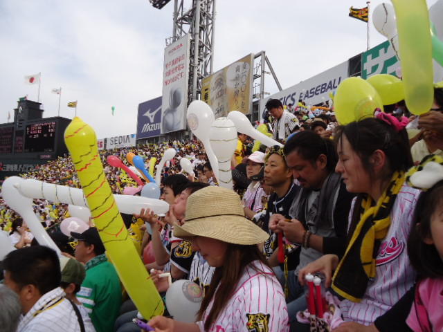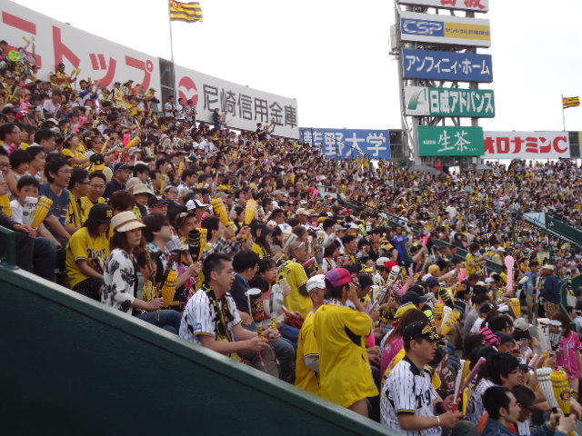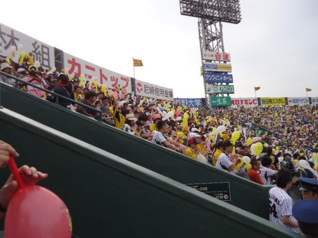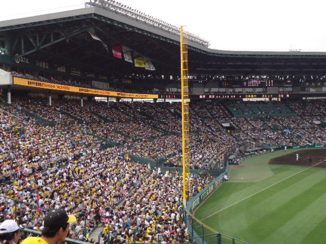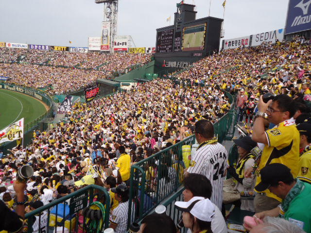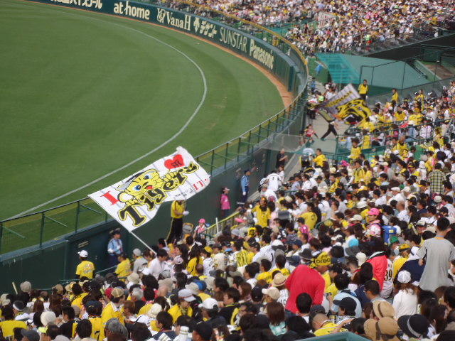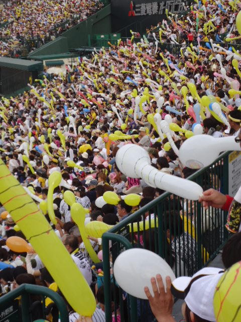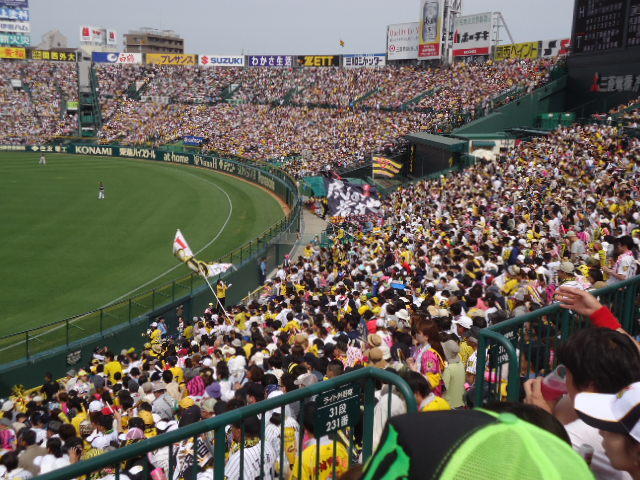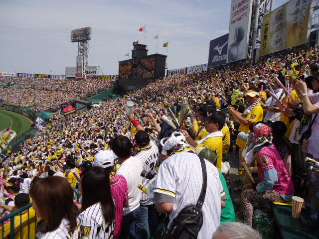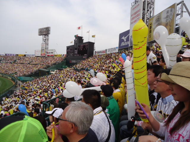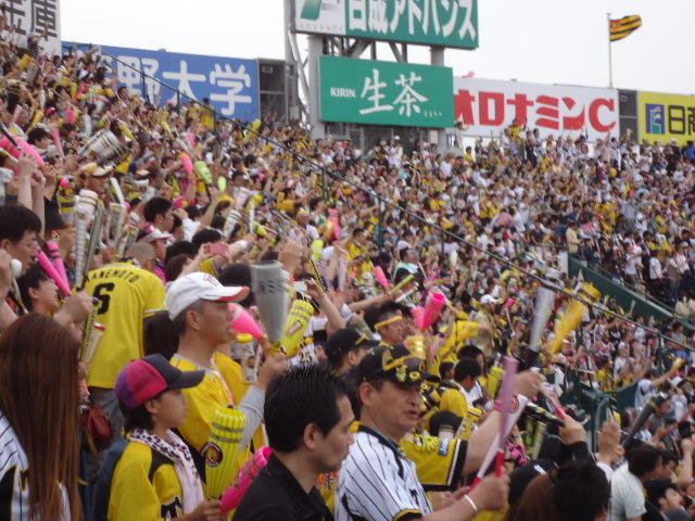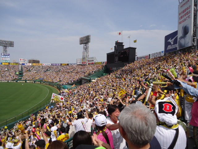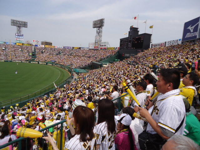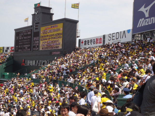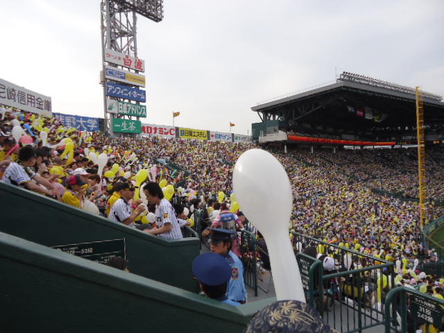 2013年5月、 こんなページ を作ったりして盛り上がり、久しぶりに甲子園に行きました。 先週の 音楽情報科学研究会 に続いて、5週で4回という学会発表シリーズの第2弾、大阪大学でのエンタテイメントコンピューティング研究会で こんな発表 をするように申し込んだのですが、なんと2日目の午前で終了すると判明し、この日の午後の甲子園でのデーゲームのチケットを入手して駆け付けました。 以下、写真または「★」をクリックして別ウインドウで開いた写真を閉じないでおいて、さらにクリックすると、その別ウインドウの中身が変わります。今回は阪神タイガースファンクラブの会員特典のタイガースバッグをダブルで持参。新幹線で新大阪へ、そして千里中央からモノレールにて阪大へ。 ★ ★ ★ ★ ★ ★ ★ ★ ★ ★ ★ ★ ★ ★ ★ ★ ★ ★ ★ ★ ★ ★ ★ ★ ★ ★ ★ ★ ★ ★ ★ ★