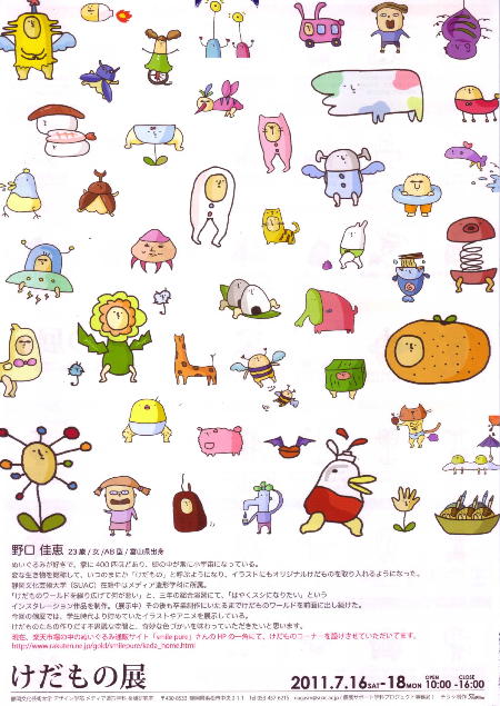 今回の展示で、受付スタッフをしていたときにバスに乗ってたらポスターが見えて気になって 来てくださった親子連れの方が特に印象に残っています。その中でもお子さんが『けだもの シューティング』に目を輝かせながら楽しんでいたのが展示に参加した一員としてとても嬉しくって、 そして自分でもこんな風に楽しんでもらえるものを創っていきたいと思いました。山田 明歩