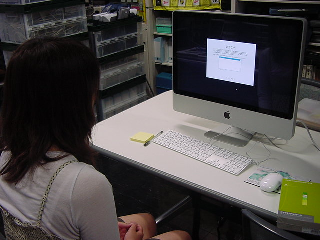 メディア造形学科2回生の細江さんが、iMacを買いました。 最新アップデートして、CS4をインストールして、 無事にセットアップは完了しました。 新しいパソコンのオーナーがまた誕生しました。(^_^) もうこれであとはデザインあるのみ。頑張ろう(^_^)。