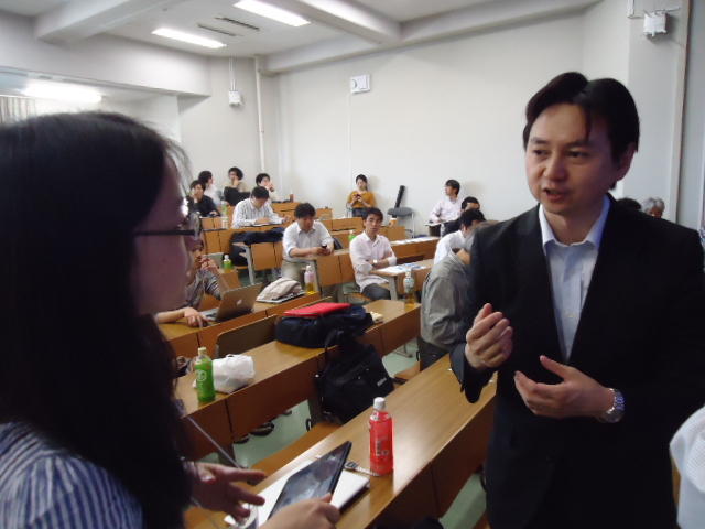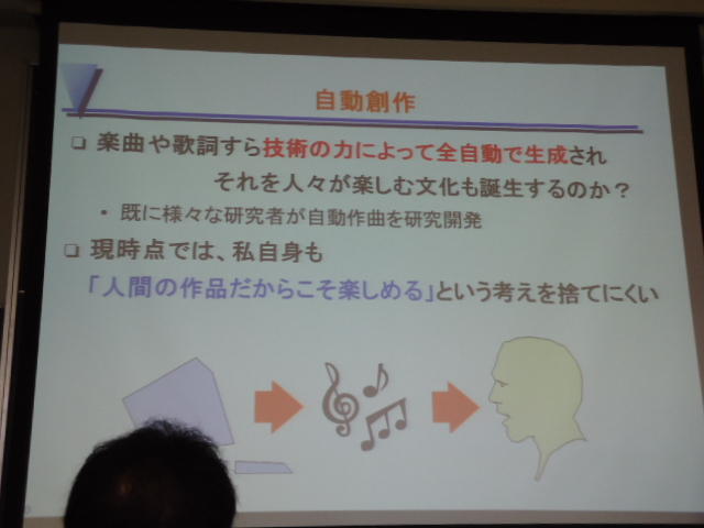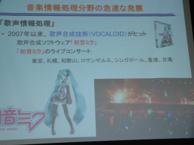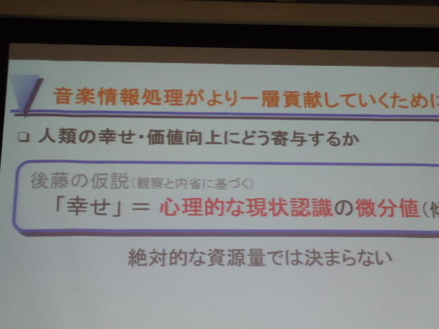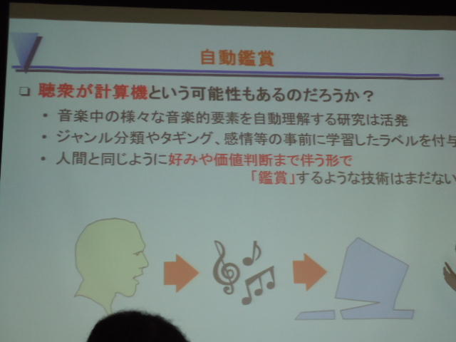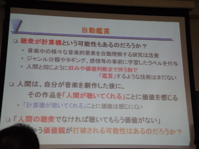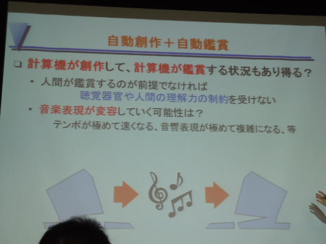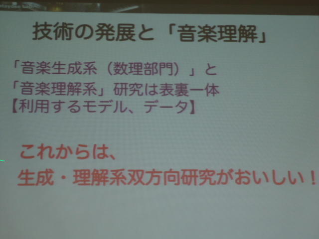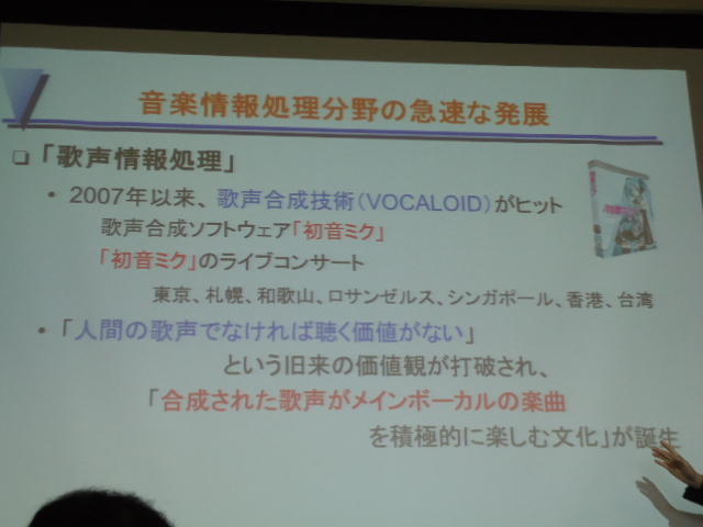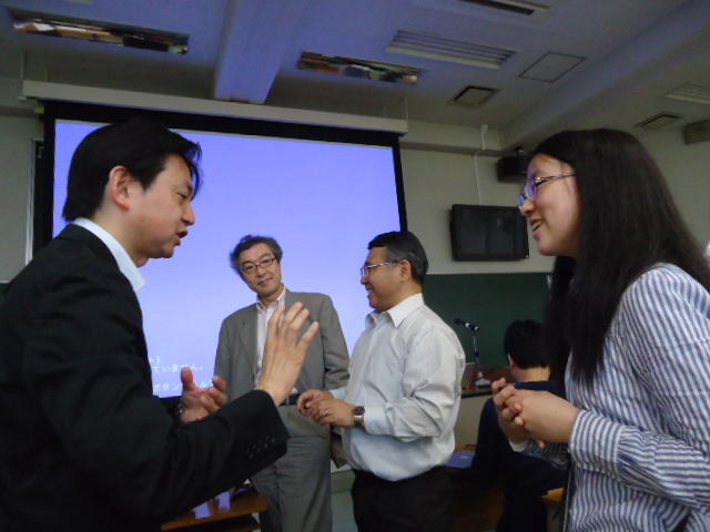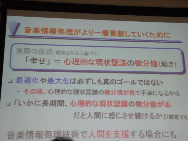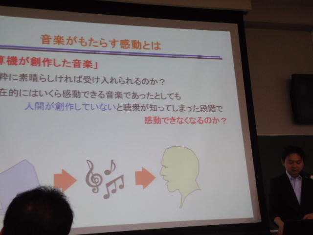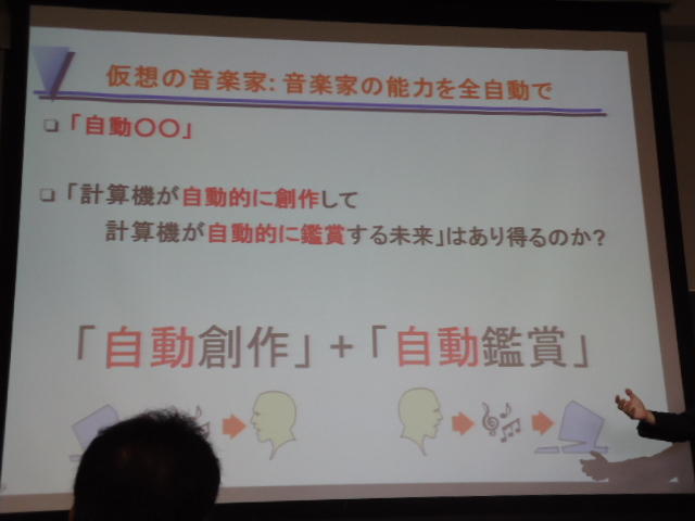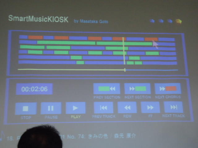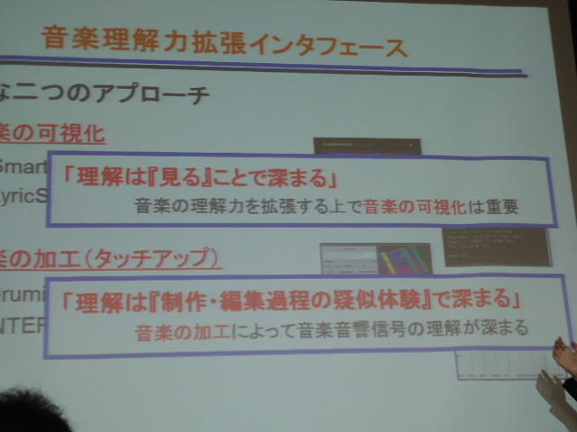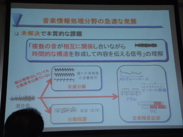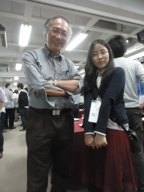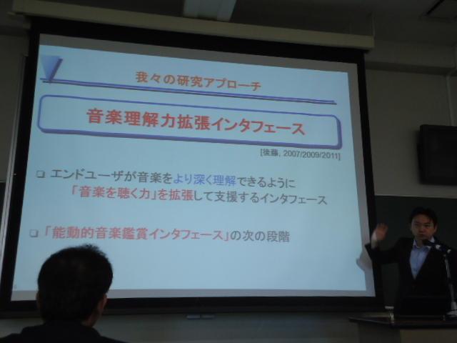 講演後の、音楽情報処理研究界のスーパースター・後藤さんと話す森川さん。 これはお宝画像です(^_^)。