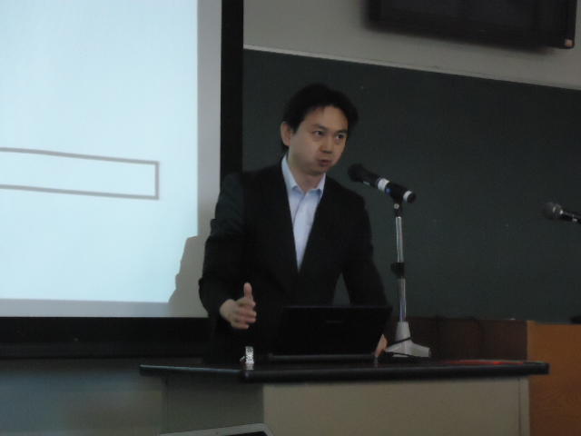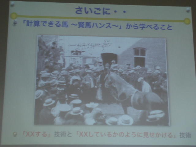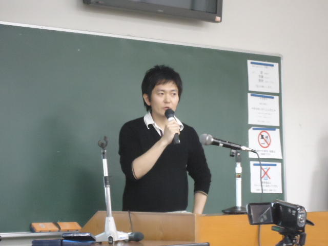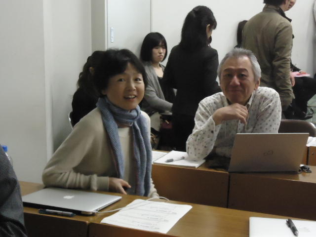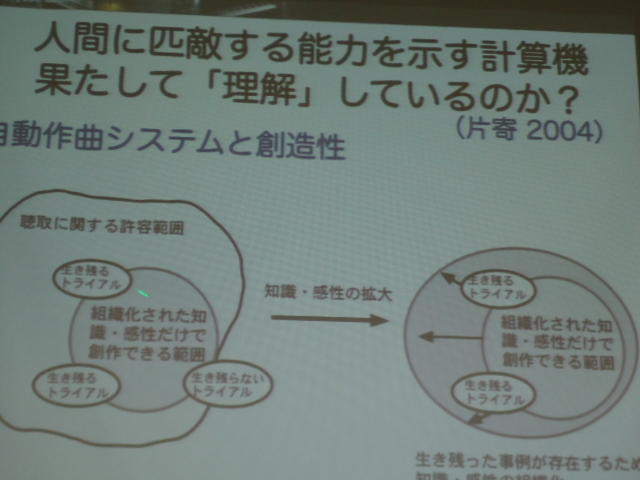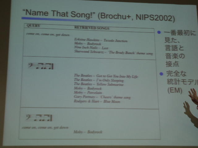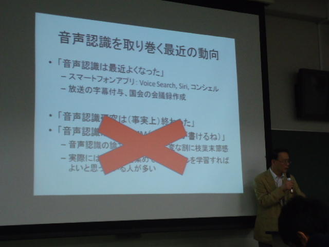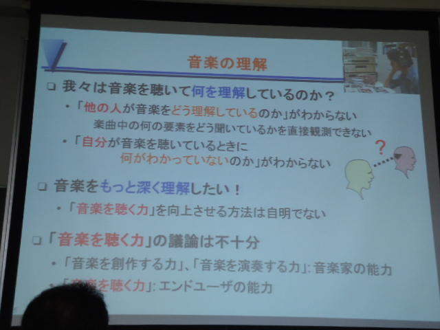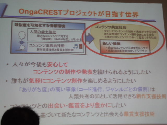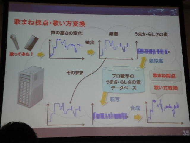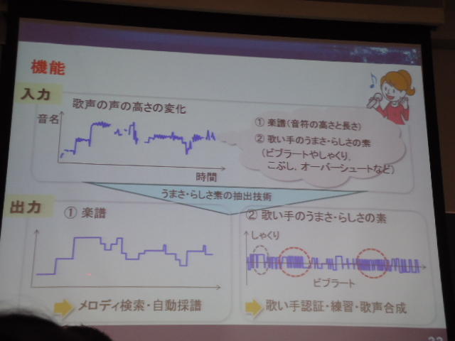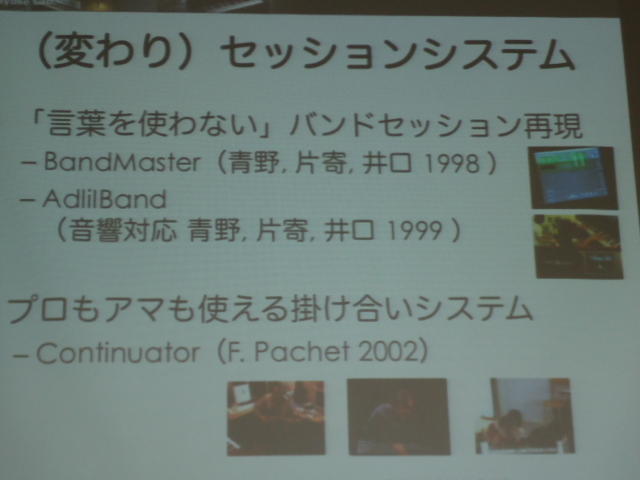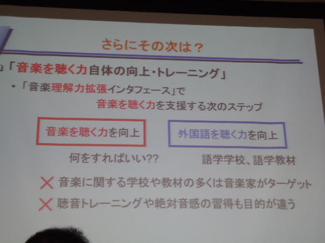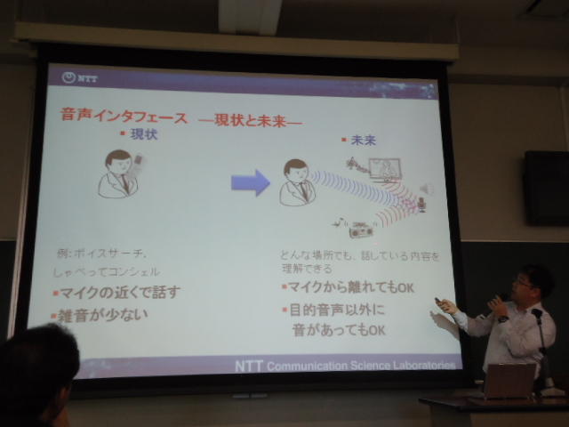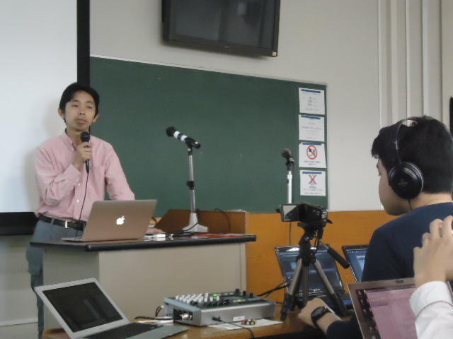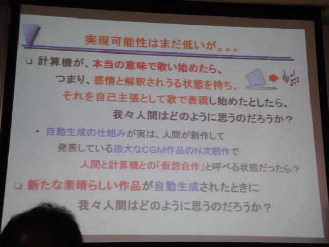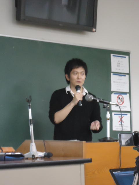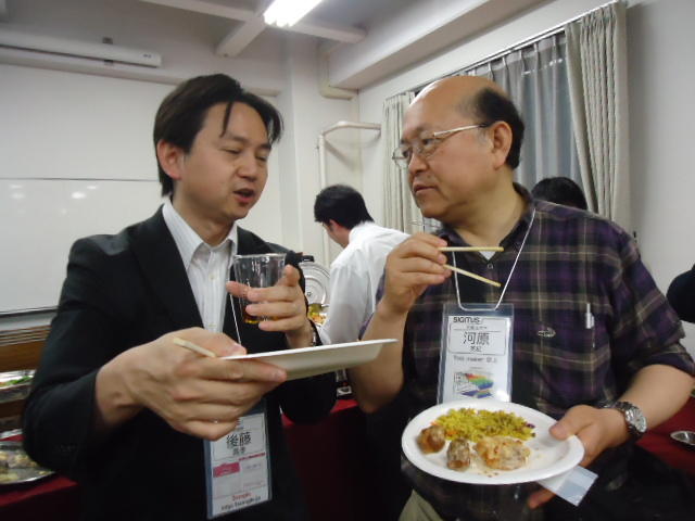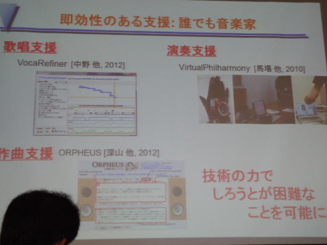 講演後の、音楽情報処理研究界のスーパースター・後藤さんと話す森川さん。 これはお宝画像です(^_^)。