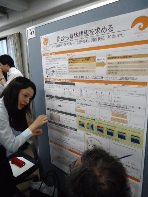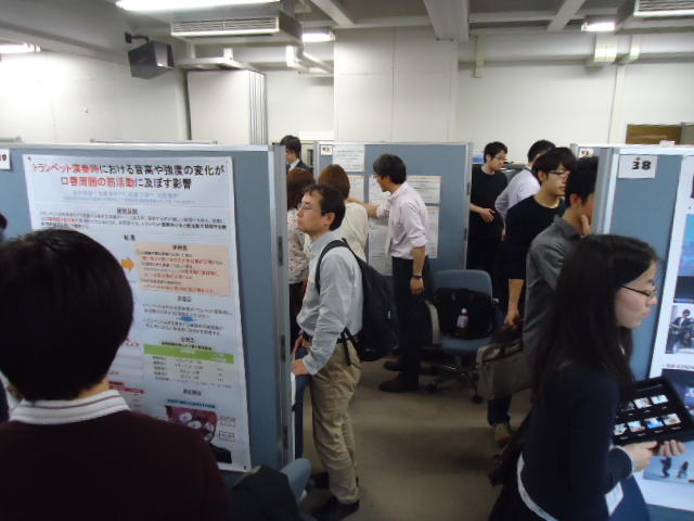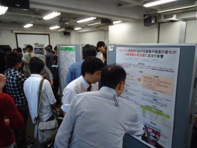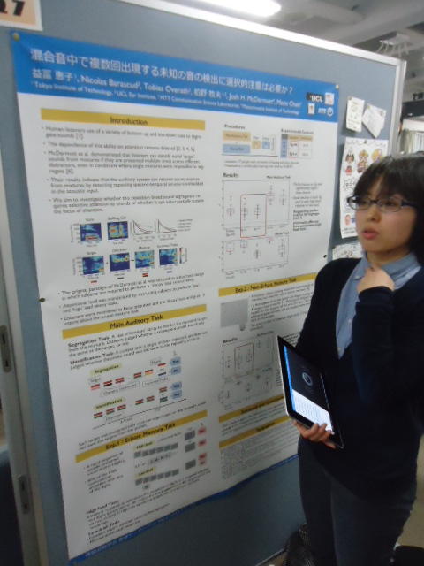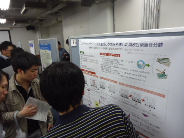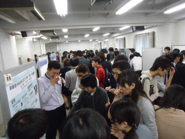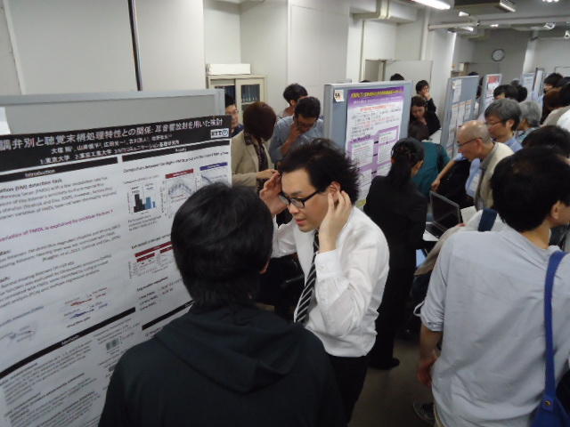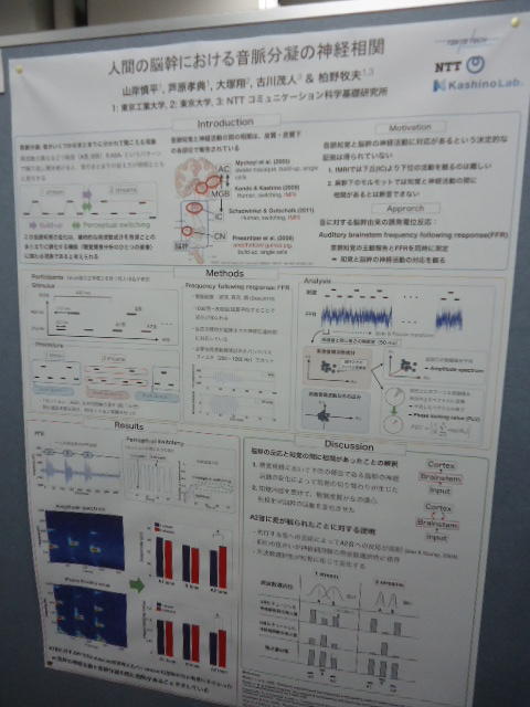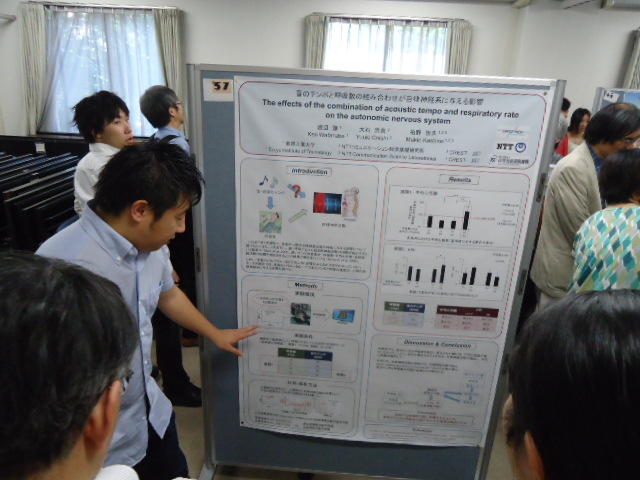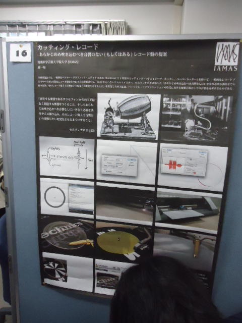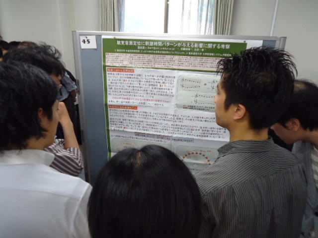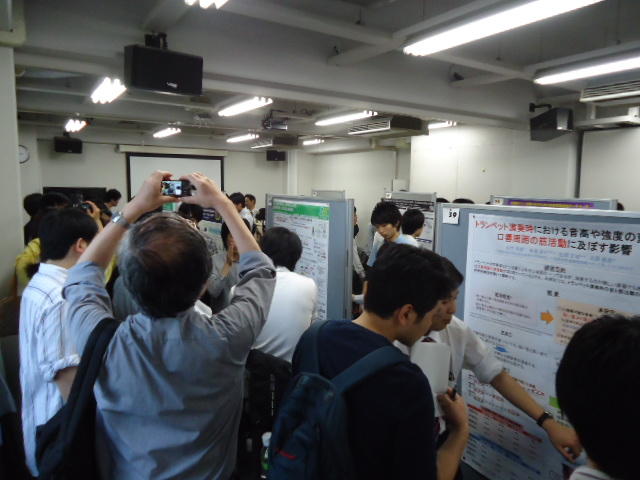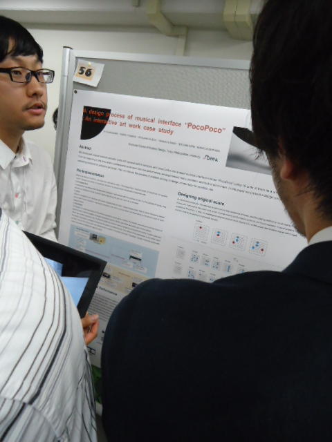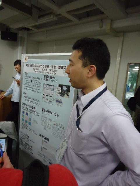 いろんな分野から音を学ぶという今回の学会でしたが、とても勉強になりました。 正直に言うと、提示された数式は(私の勉強不足もあって)そんなに理解出来ません でしたが、先生がおっしゃってた様に、自身の創作のタネになる様なものばかりで、 とても充実した2日間でした。 また、実際にポスターセッションの場で研究者(発表者)の方とお話し出来た事が その研究を知るのにとても大きかったと思います。そして、自身が発表者として 立ったときに人に伝える事の難しさを改めて痛感しました。それと同時に伝えたい 事が伝わり、深くお話できたときとても嬉しく感じました。 大学という場で学ぶのは残り少ないですが、日々勉強、精進しようと思いました。 ありがとうございました。リュ・ジュンヒー