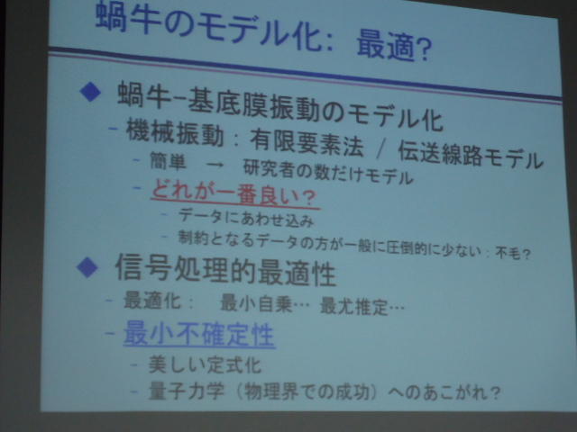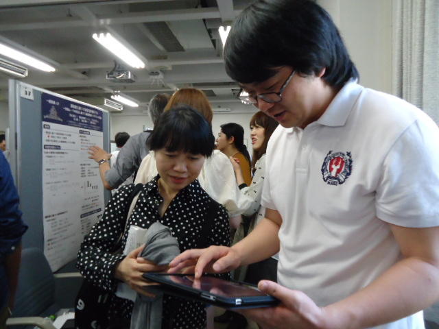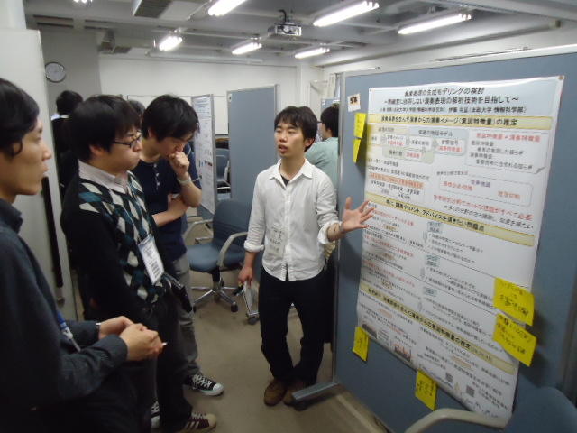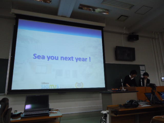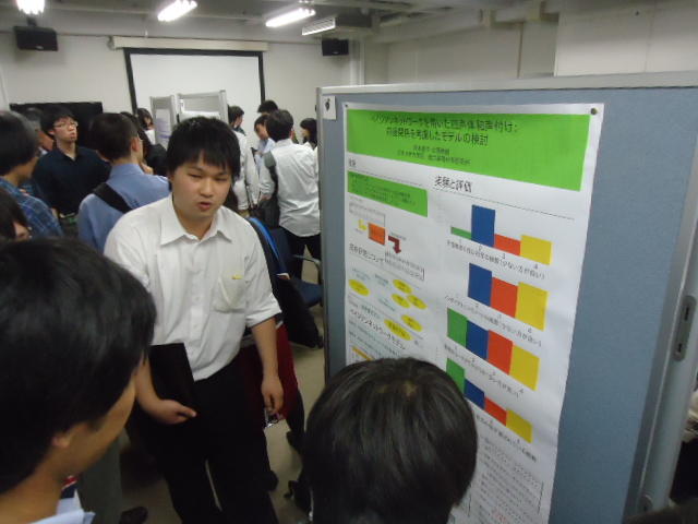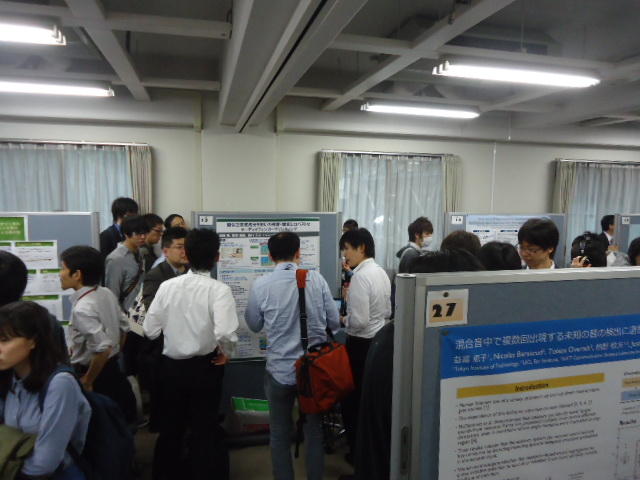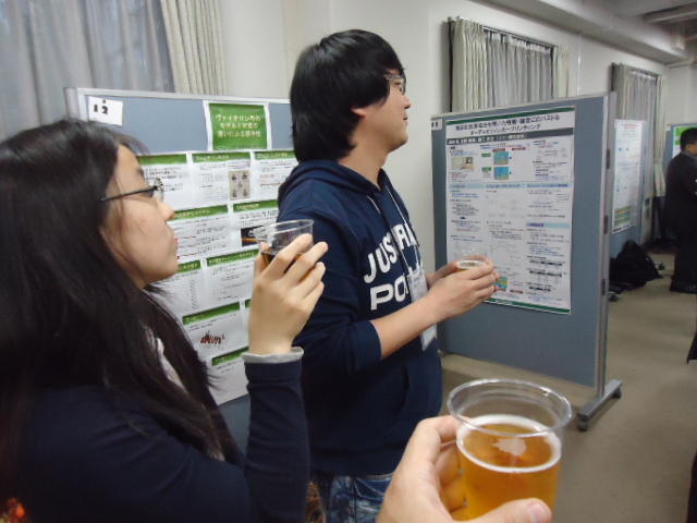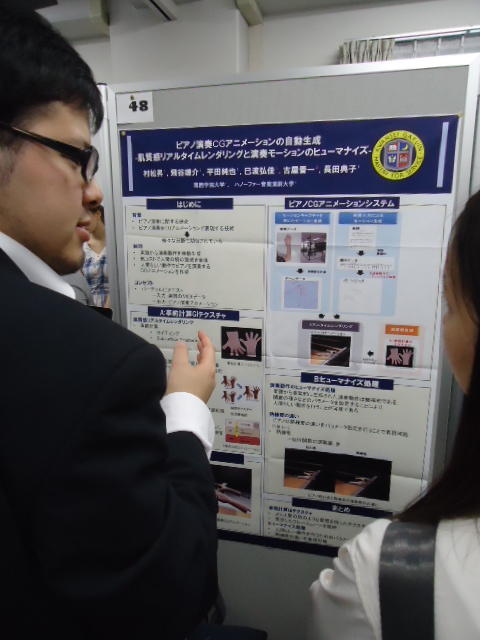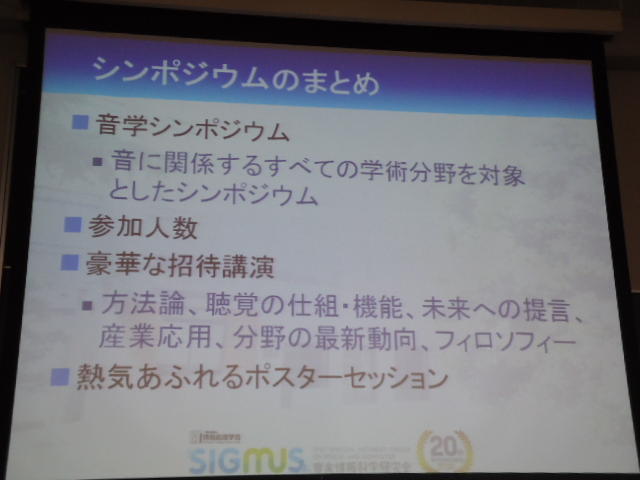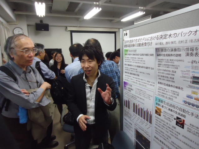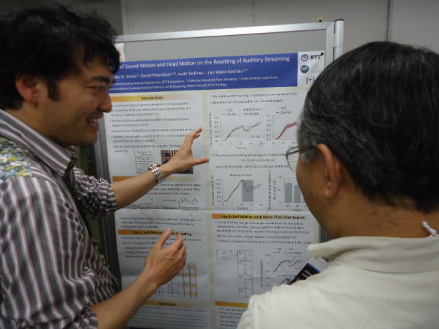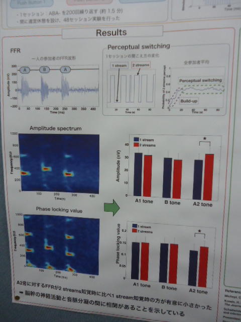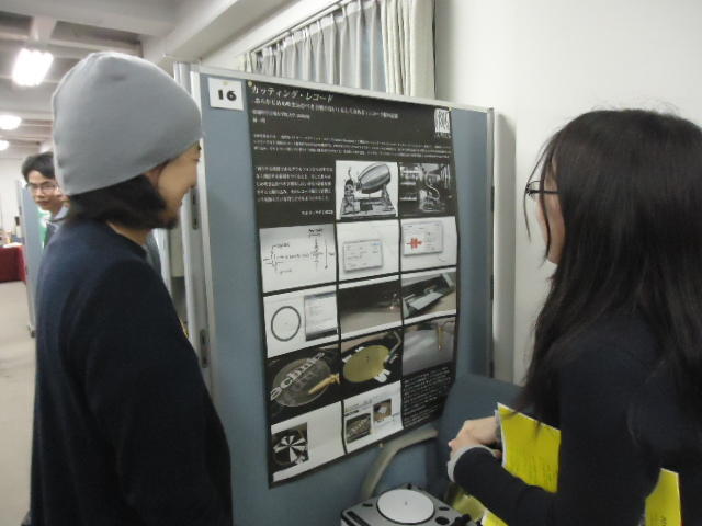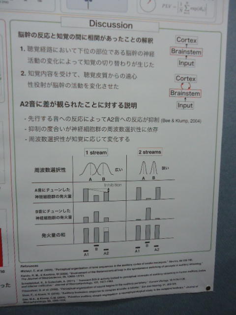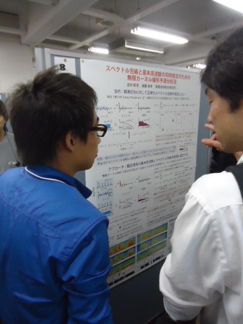 いろんな分野から音を学ぶという今回の学会でしたが、とても勉強になりました。 正直に言うと、提示された数式は(私の勉強不足もあって)そんなに理解出来ません でしたが、先生がおっしゃってた様に、自身の創作のタネになる様なものばかりで、 とても充実した2日間でした。 また、実際にポスターセッションの場で研究者(発表者)の方とお話し出来た事が その研究を知るのにとても大きかったと思います。そして、自身が発表者として 立ったときに人に伝える事の難しさを改めて痛感しました。それと同時に伝えたい 事が伝わり、深くお話できたときとても嬉しく感じました。 大学という場で学ぶのは残り少ないですが、日々勉強、精進しようと思いました。 ありがとうございました。リュ・ジュンヒー