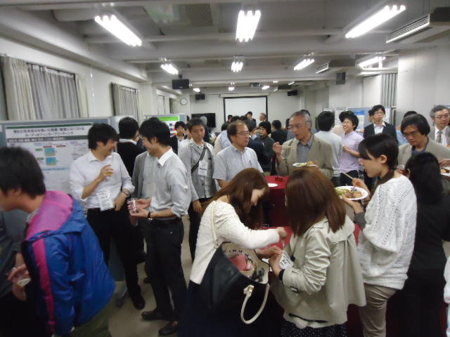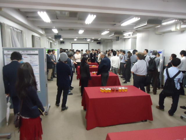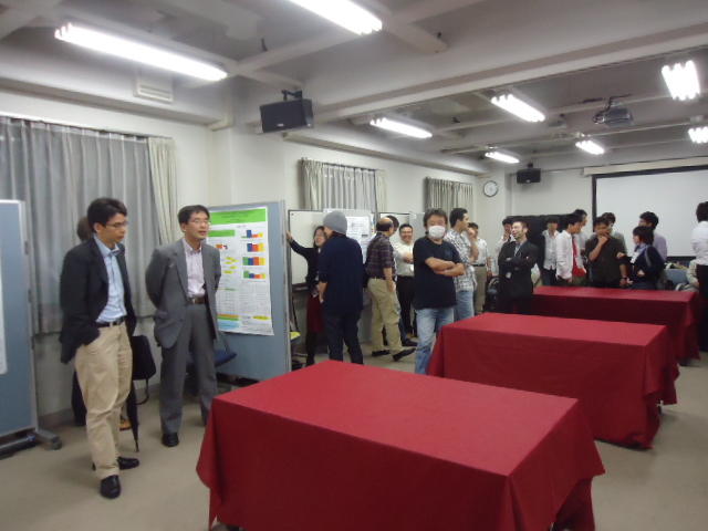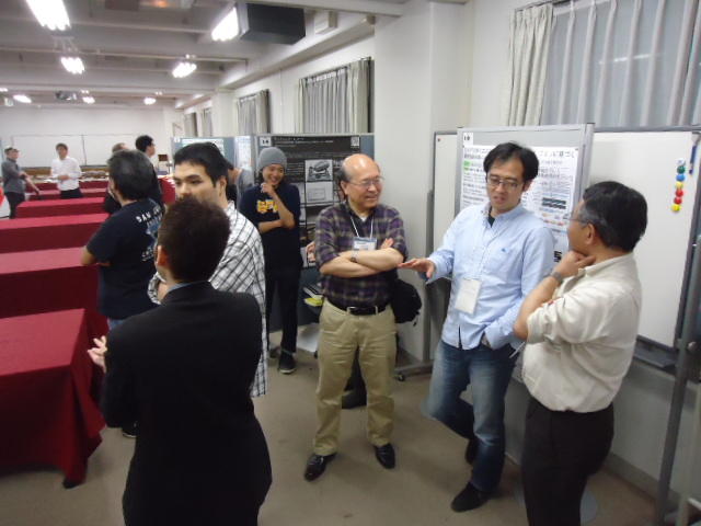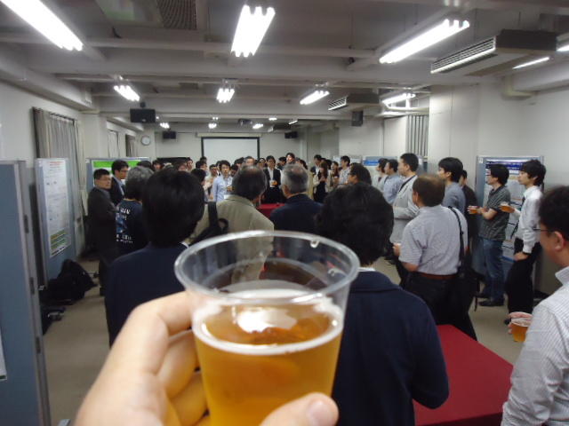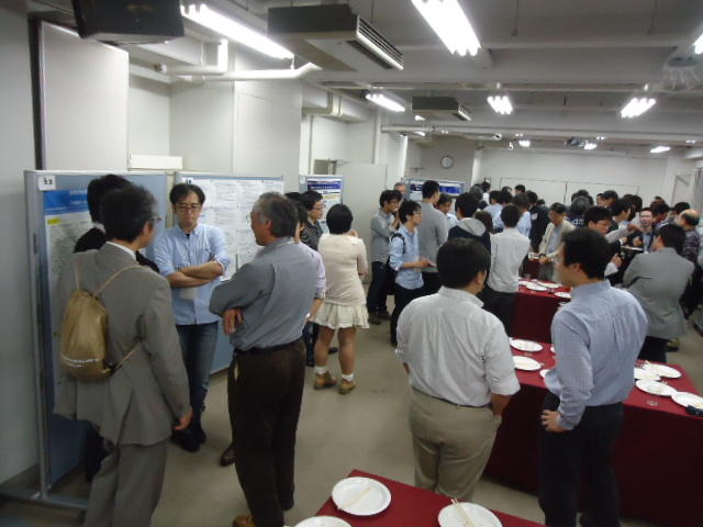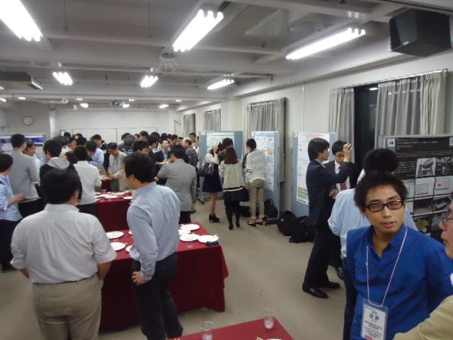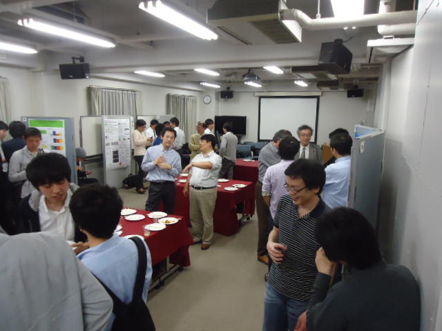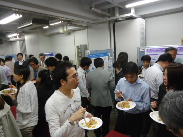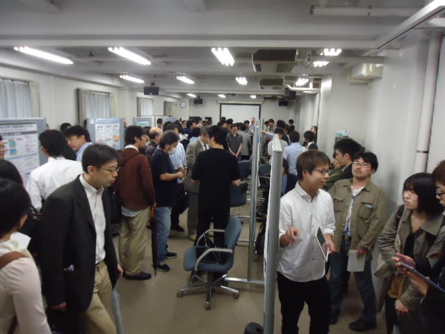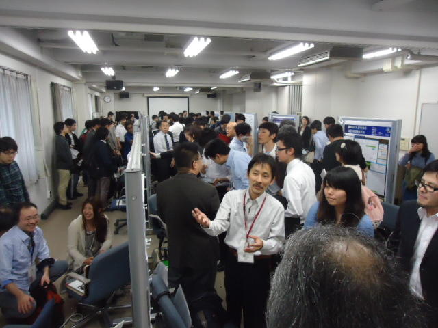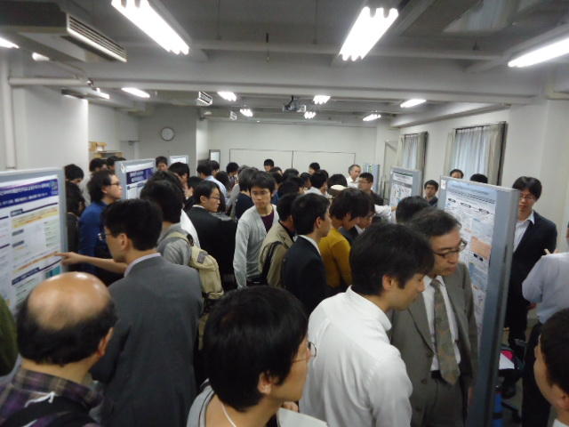 初日のポスターセッションです。 このシンポジウムでは12人の招待講演をシングルトラックで全員が聞くために、一般発表は全てポスターとしました。
