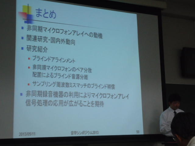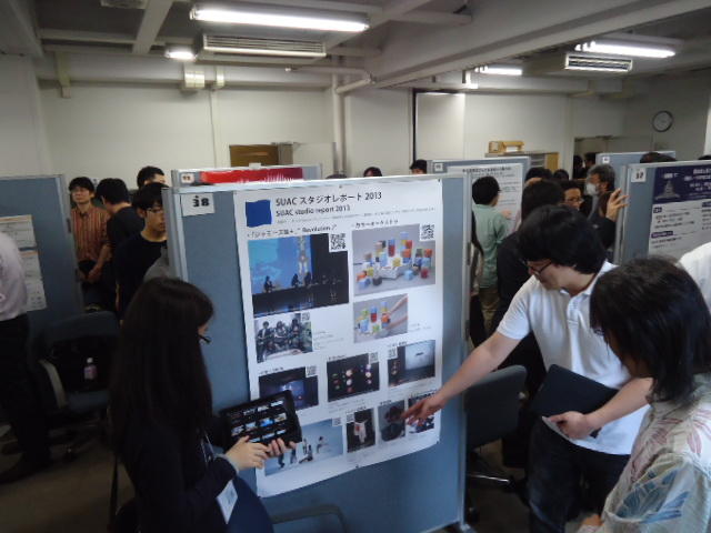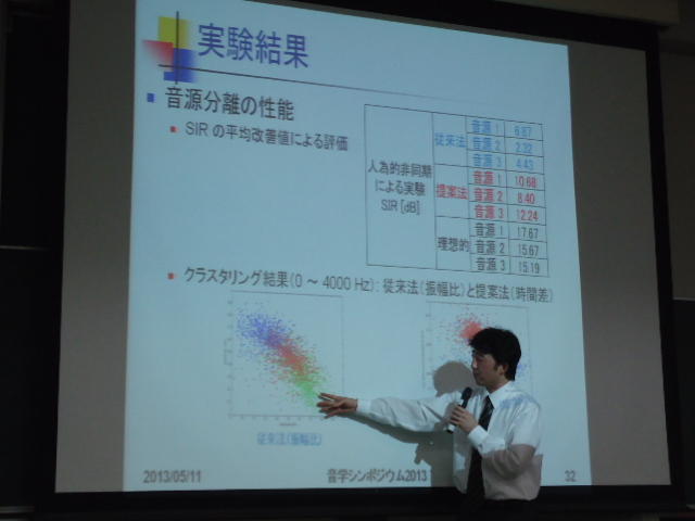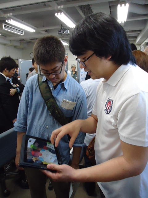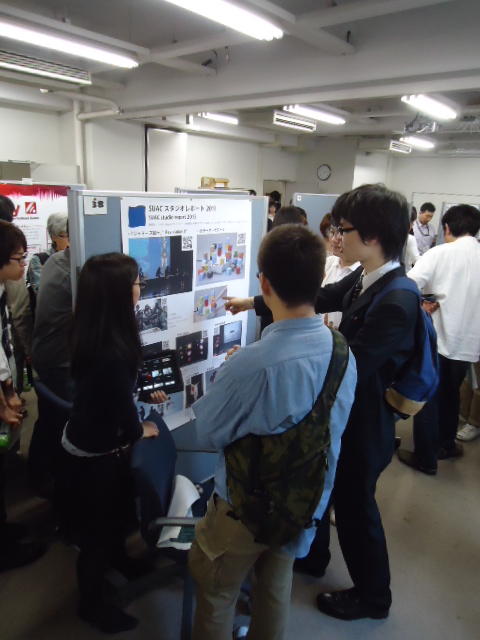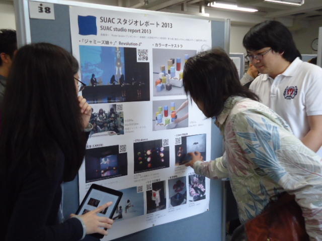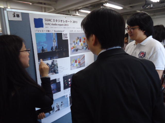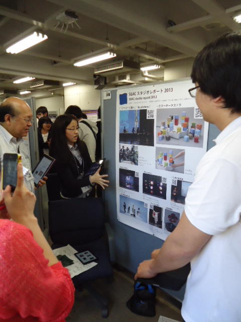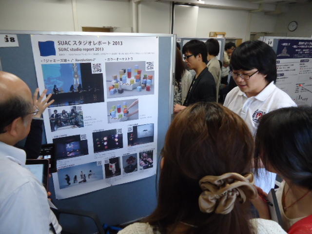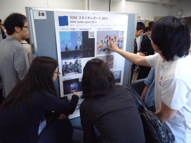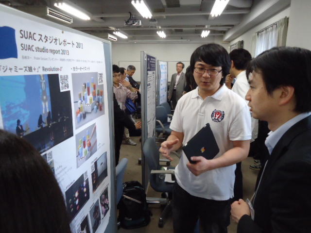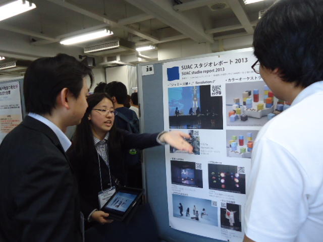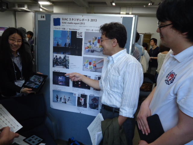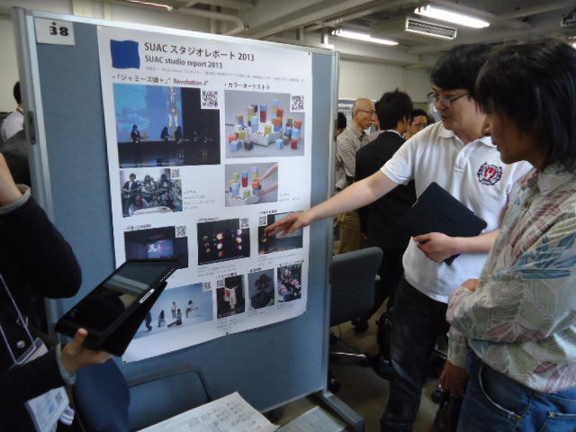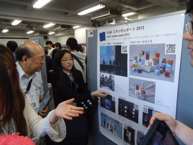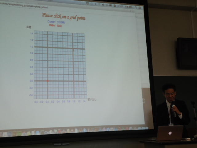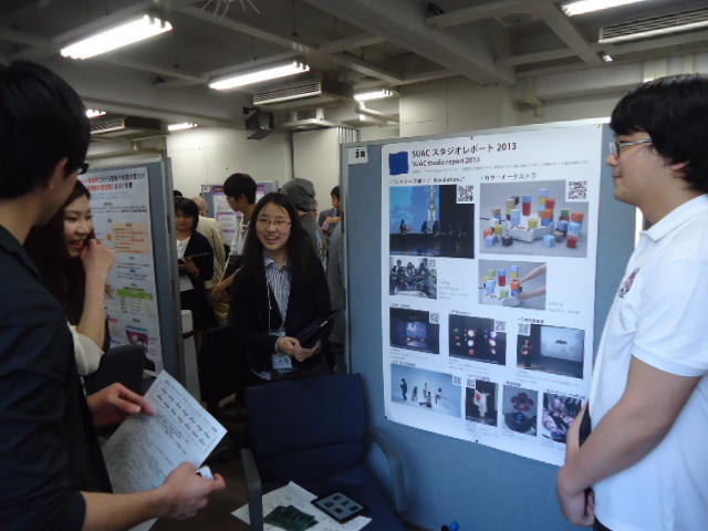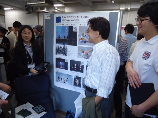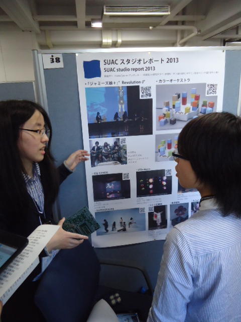 2013年5月11-12日、お茶の水女子大で開催された、情報処理学会 音楽情報科学研究会 第99回研究会「音学シンポジウム」に発表参加しました。 今回はSUACのスタジオレポートをパネルセッションで発表し、実際には院生のリュ君と3回生の森川さんがそれぞれiPadを手にプレゼンしました。今回の同行者は、「ジャミーズ娘+」で活躍した3回生の森川さんと、交換留学生からSUAC大学院に来てくれたM1のリュ君の二人です。