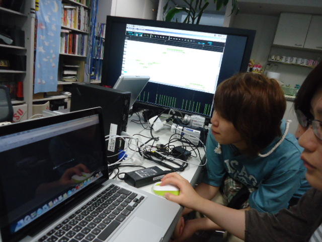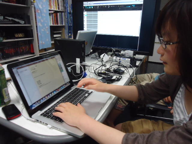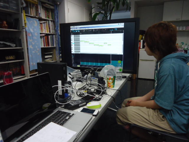 第41期「虎の穴」 (2日目) 2013年8月 長嶋洋一 41虎の2日目は、初音ミクと音楽の相談、そして映像作品の撮影などのプロジェクトの相談を進めました。限られた日数で完成まで到達するかどうか、スタートの時期ですがいきなり正念場です。以下はその模様です。 初音ミク・昨日のリベンジ 初音ミク・オリジナル