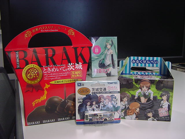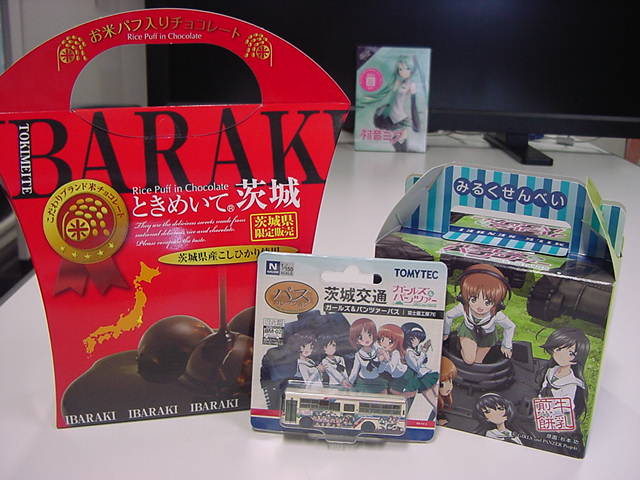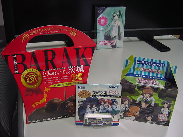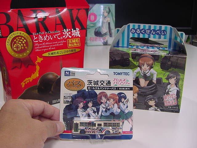 そして茨城土産です。ガルパンって知らなかったのですが、茨城交通のミニチュアバスは限定品のお宝です