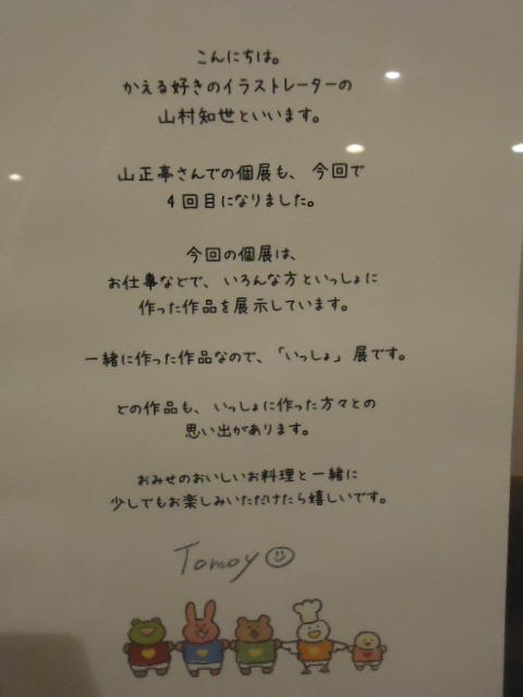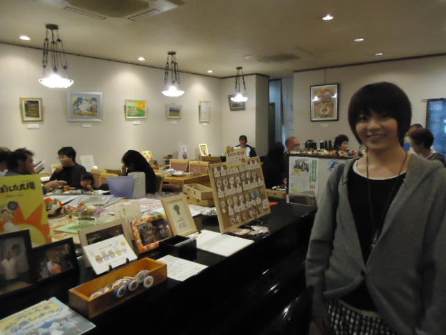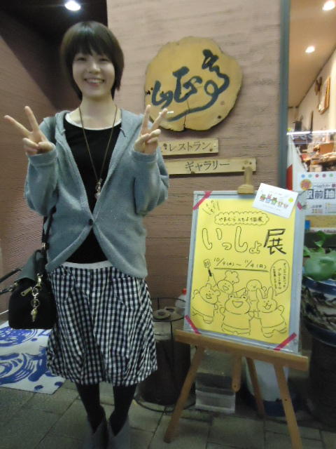 山村知世 個展 2013 2013年10月 長嶋洋一 メディア造形学科卒業生の山村さんが焼津で個展をしている、ということで、またまた浜松から焼津に出かけてきました。 いつものカフェ「山正亭」で山村さんの個展の中で夕食、そしてメディア造形の卒業生が3人合流して、これぞ焼津、という去年と同じ居酒屋というコースでした。