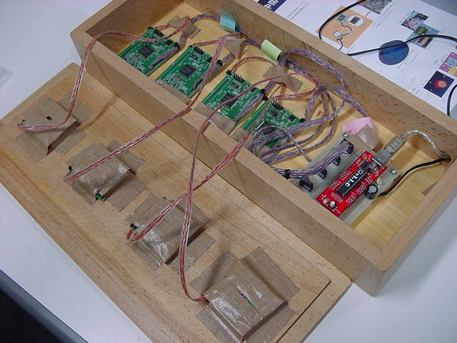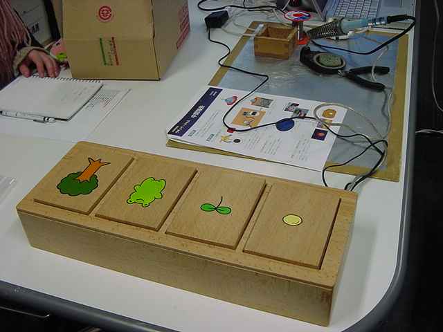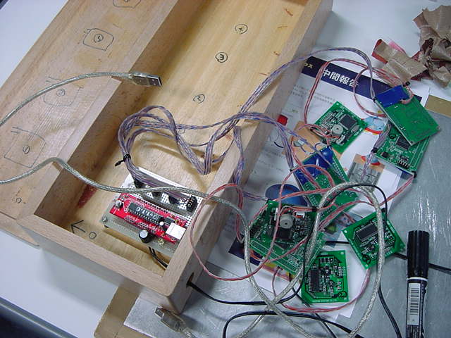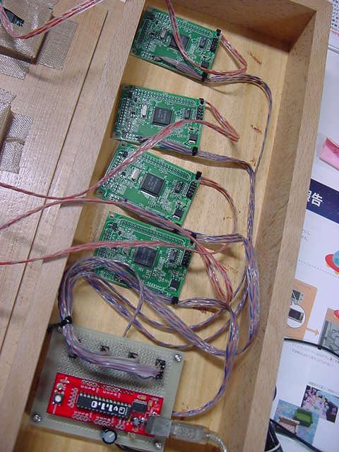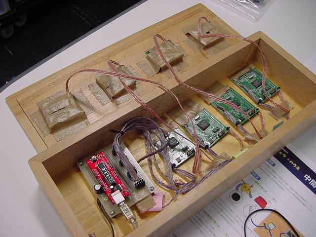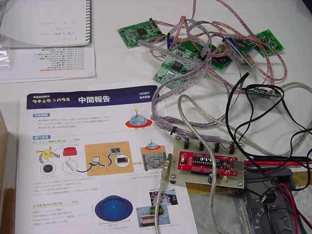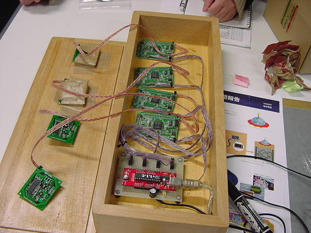 柚木さんの卒業制作インスタレーション作品「ウチュウ☆ハウス」 に使用するため、山村さんの動態保存インスタレーション作品 「おはなしパネル」から、一時的に4系統RFIDリーダ・システムを 取り出しました。卒展が終わったら元に復元するための記録です