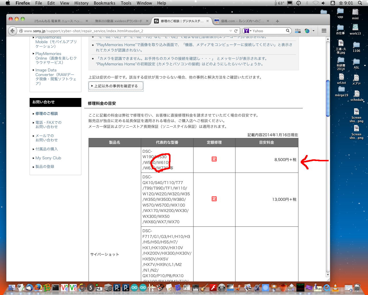 そしてSONYのサイトで調べて、このデジカメの修理代金は税抜8500円と判明しました。 新古品を16000円ぐらいで買ってますが、まぁ修理してでも使いたいです