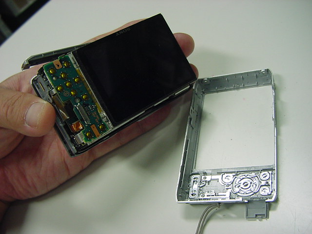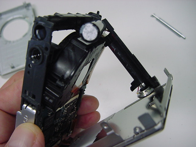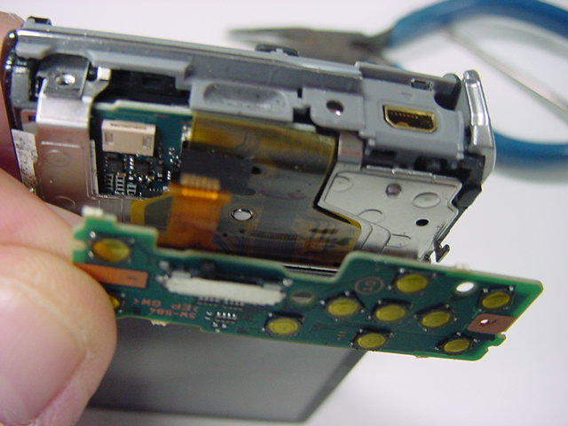 ここで組み立ててみると、画面は奇麗に埃が取れていたのですが、なんと電源ON/OFFだけ受け付けて、ズームスイッチ、その他全てのスイッチを受け付けなくなりました(^_^;)。