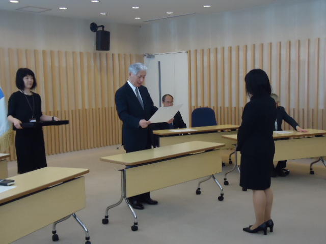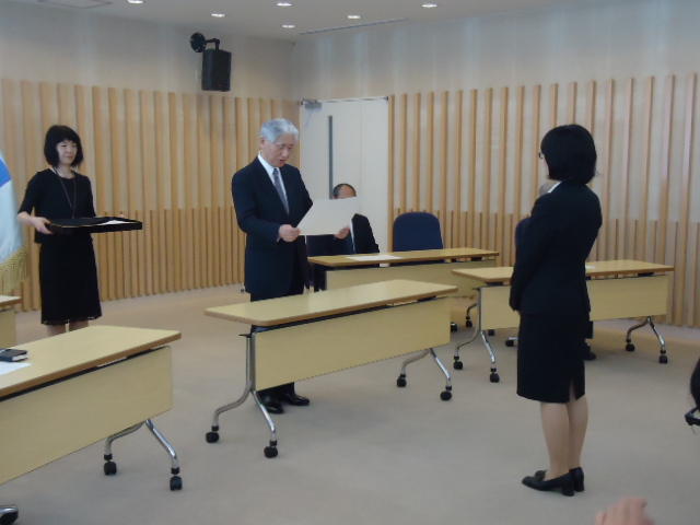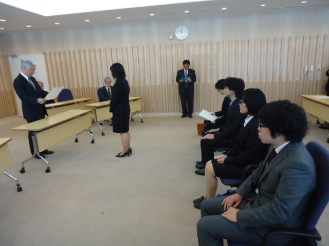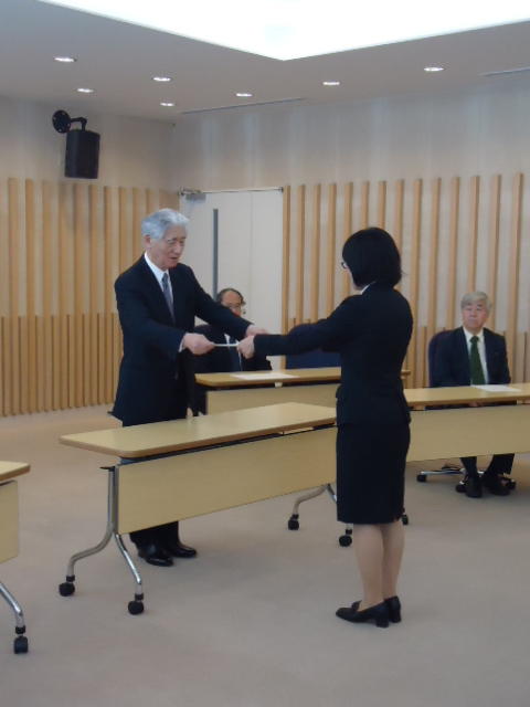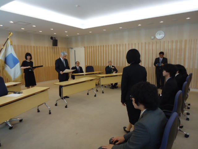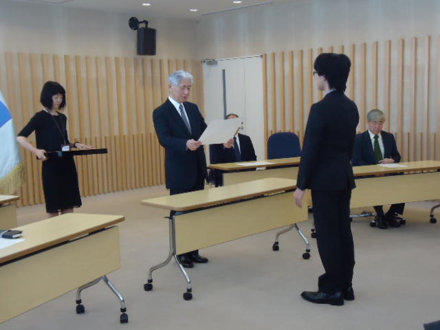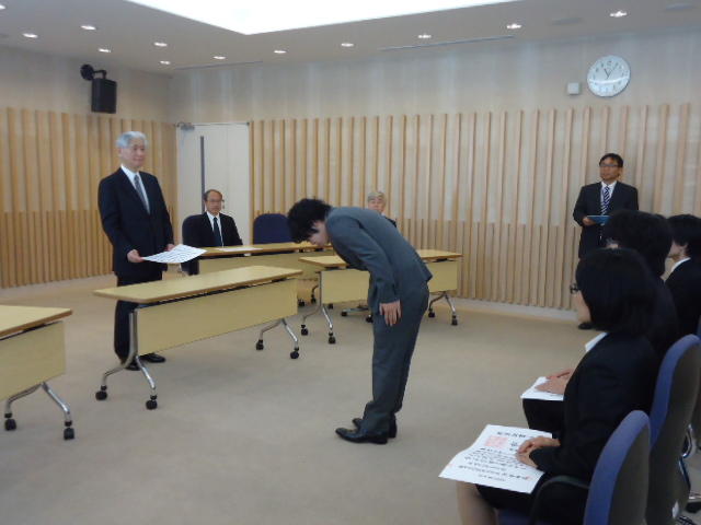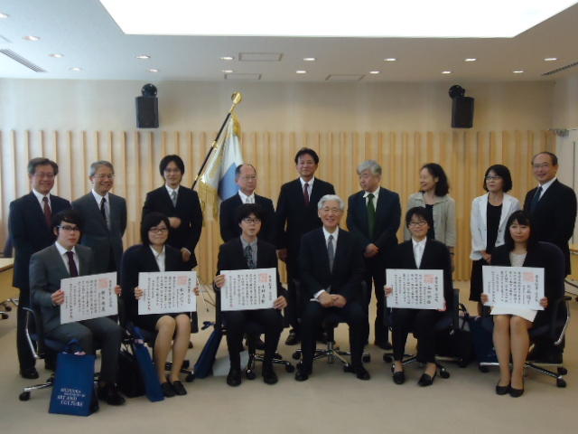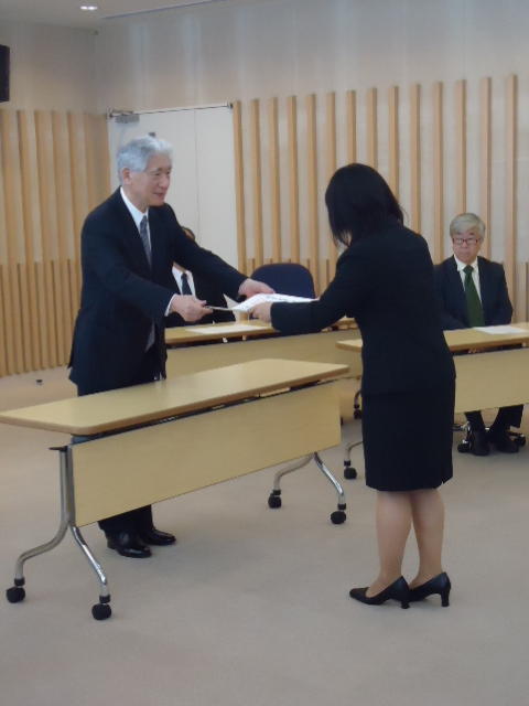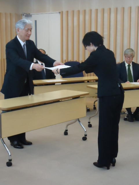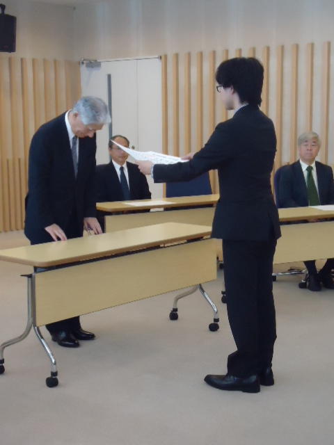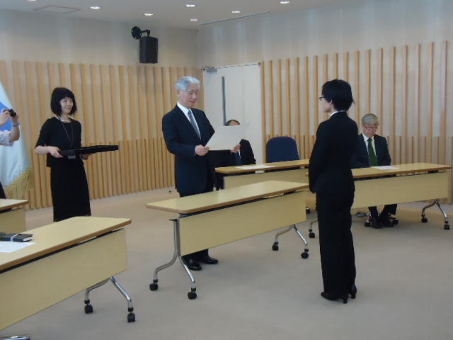 2014年9月25日、 普段、学生が入ることもないデザイン学部教授会用の会議室で、 個々の事情(^_^;)で半年遅れた卒業式が挙行され、 メディア造形学科からも1人が卒業していきました。