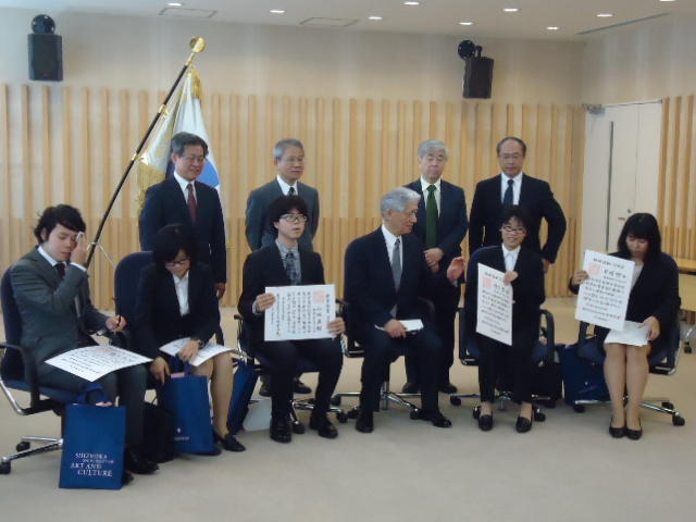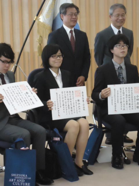 半年遅いSUAC卒業式2014 2014年9月 長嶋洋一 2014年9月25日、 普段、学生が入ることもないデザイン学部教授会用の会議室で、 個々の事情(^_^;)で半年遅れた卒業式が挙行され、 メディア造形学科からも1人が卒業していきました。