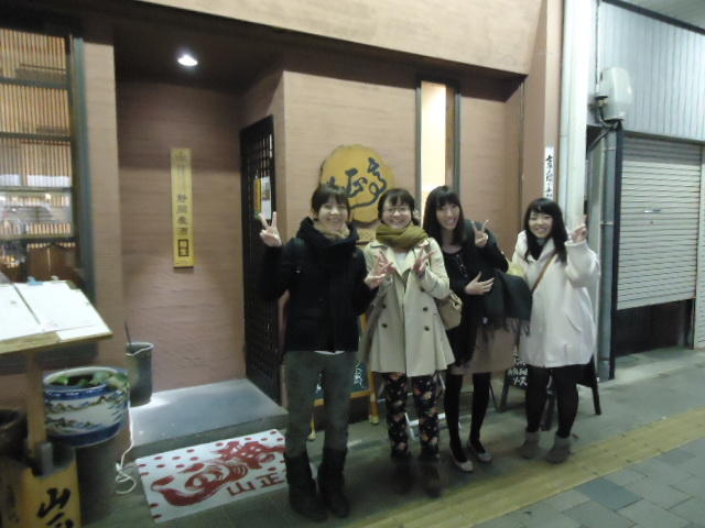 メディア造形学科卒業生の山村さんが焼津で個展をしている、ということで、またまた浜松から焼津に出かけてきました。 メディア造形の卒業生3人とも合流して、いつものカフェ「山正亭」で山村さんの個展の中で夕食、そしてこれぞ焼津、という去年と同じ居酒屋というコースでした。