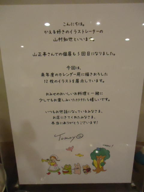 山村知世 個展 2014 2014年11月 長嶋洋一 メディア造形学科卒業生の山村さんが焼津で個展をしている、ということで、またまた浜松から焼津に出かけてきました。 メディア造形の卒業生3人とも合流して、いつものカフェ「山正亭」で山村さんの個展の中で夕食、そしてこれぞ焼津、という去年と同じ居酒屋というコースでした。