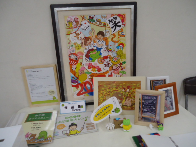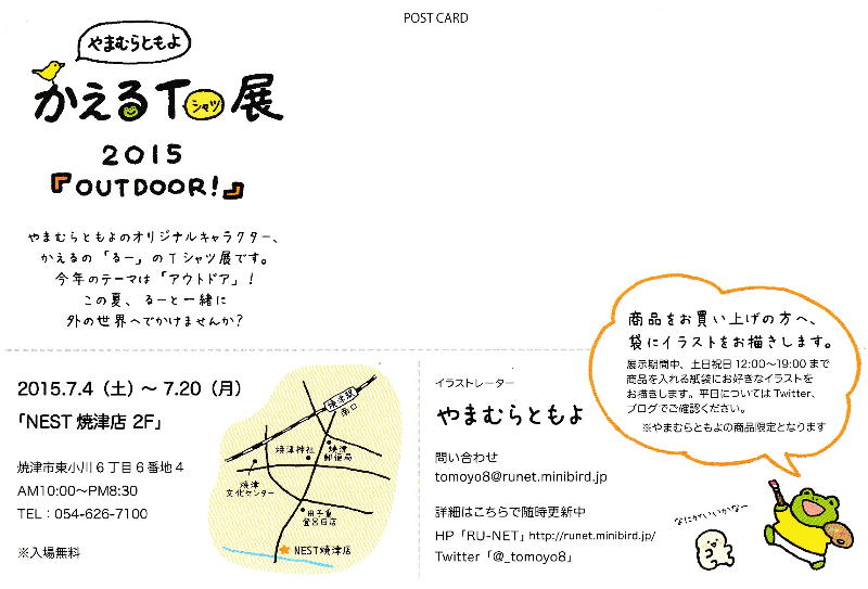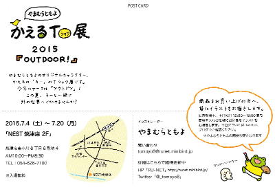 卒業生の山村知世さんの「Tシャツ個展」があるというので、またまた焼津に行きました。 過去には、 2010年の個展(初・焼津)、 2010年の個展(見崎さんと合同)、 2011年の個展、 2012年の個展、 2013年の個展、 2014年の個展 へと、焼津に行ってます。 山村さんは 絵本(1)、 絵本(2)、 とか イラスト、 とか カレンダー、 とかで 活躍、 しています(^_^)。 今回はプチ同窓会のメンバーが皆んな多忙で、打ち上げは2人きりでした。