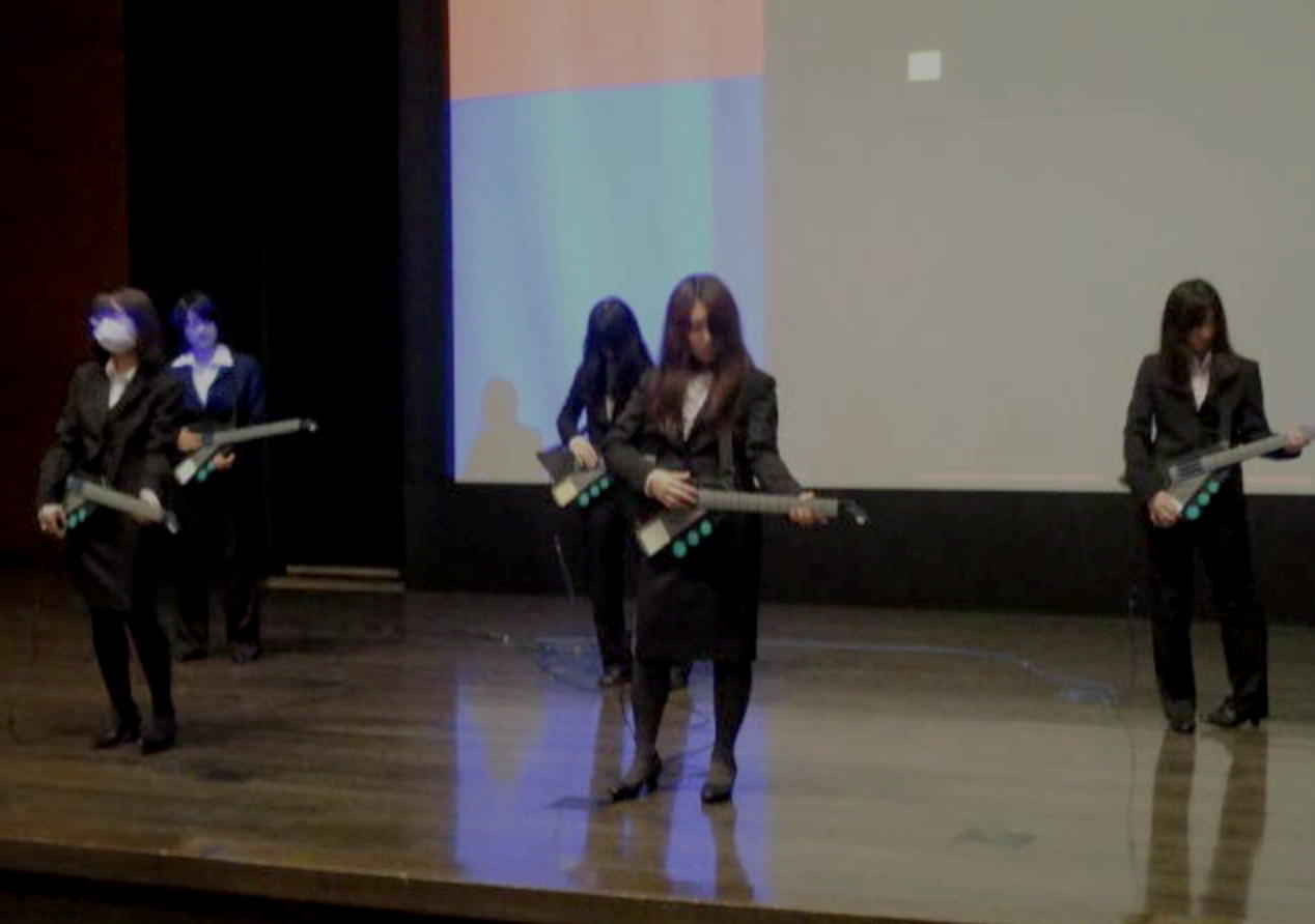 2010年、デザイン学部メディア造形学科新入生5人(上埜安佳里+鈴木千佳+山田明歩+森川真衣+土佐谷有里子)とともに、エアギター玩具Jaminatorのジャンク品を改造して5人レディースバンド「ジャミーズ娘+」として、 2011年12月10日にインターカレッジ2011(首都大学東京)で初演、翌年2012年8月25日に「MOM2012ライブ」 (ソフトピアジャパン)で再演する、というプロジェクトをプロデュース・作曲しました。