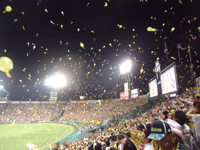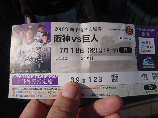 熱くも残念な甲子園・2016 2016年7月 長嶋洋一 一昨年も こんなふうに、 去年も こんなふうに、 盛り上がったのですが、ヤフオクでゲットして今年も巨人戦の甲子園に行きました。 ただし今年は負けてしまったので超淡白です。(^_^;)