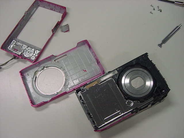 令和のプチ修理(再) 2019年7月 長嶋洋一 良い子は真似しないで下さい 出張が続いて ★ ★ ★ たくさん活躍して、また内部に塵の入ったデジカメを開けて修理しました。 所用10分、手慣れたルーチンです。