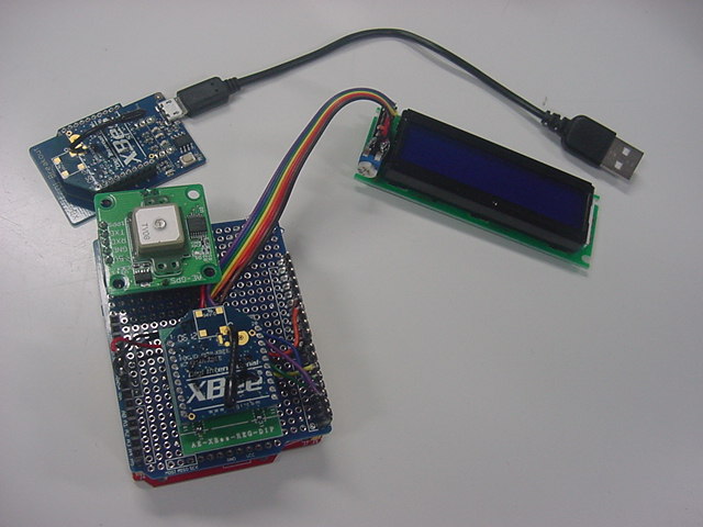 GPSからLCDとXBee経由でMaxへWiFi送信