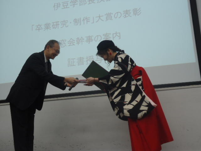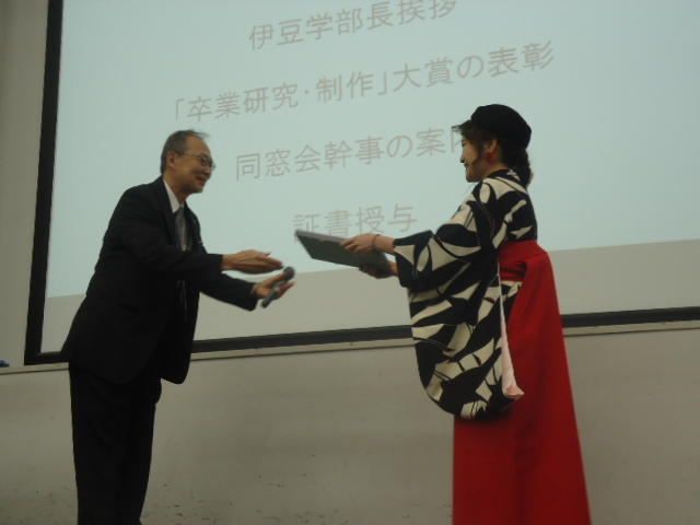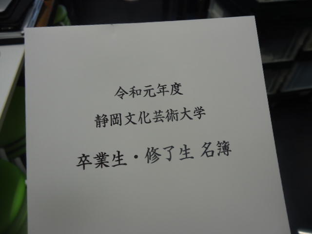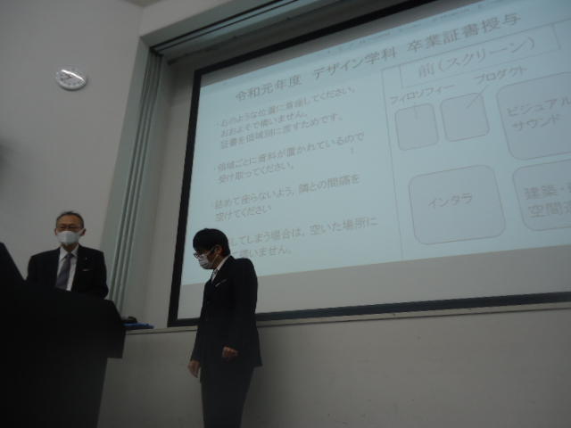SUAC卒業(式)2020 2020年3月 長嶋洋一 (COVID-19(武漢肺炎)のため卒業式は中止で学科ごとの「卒業証書授与」だけ)