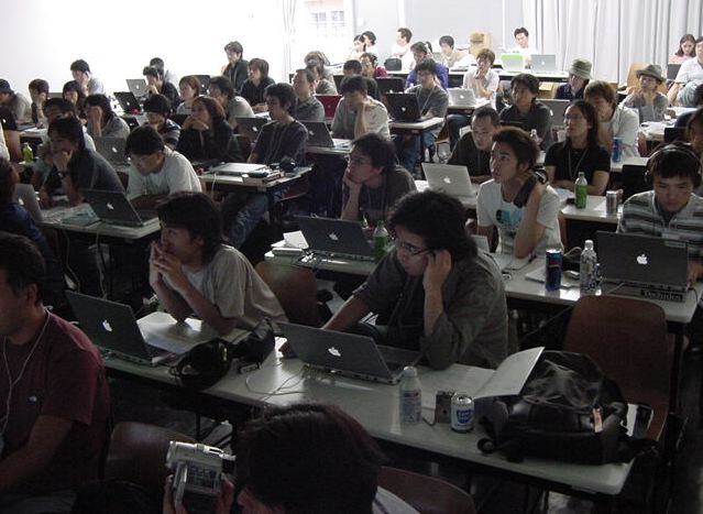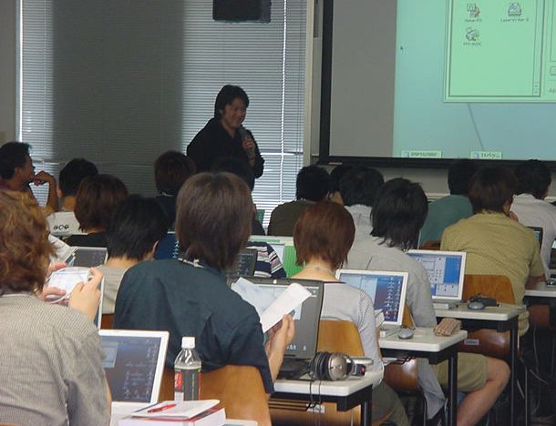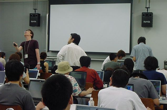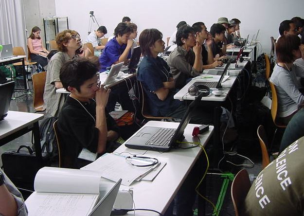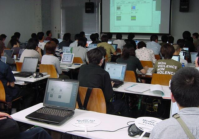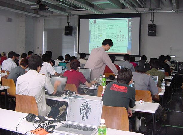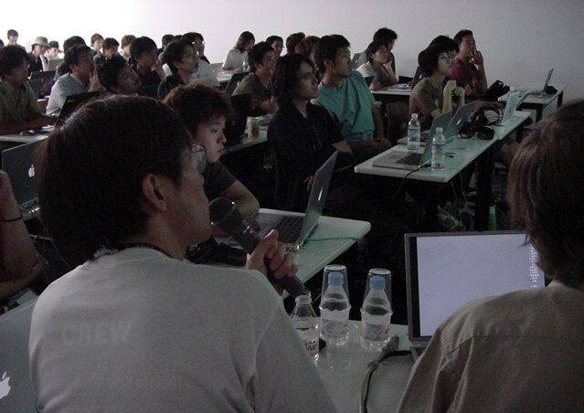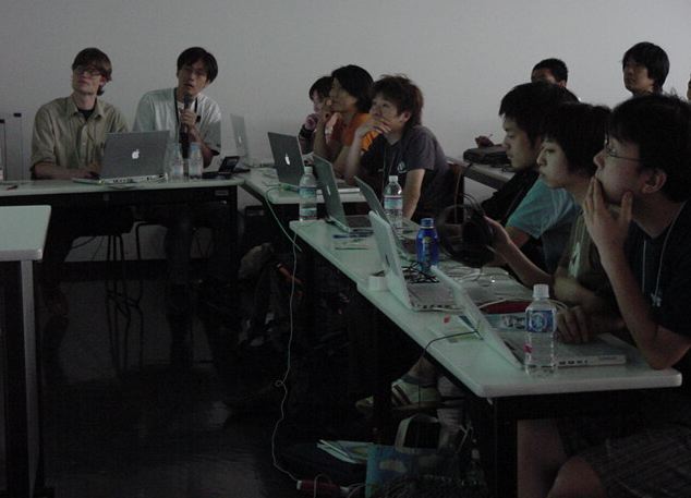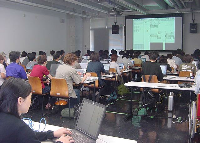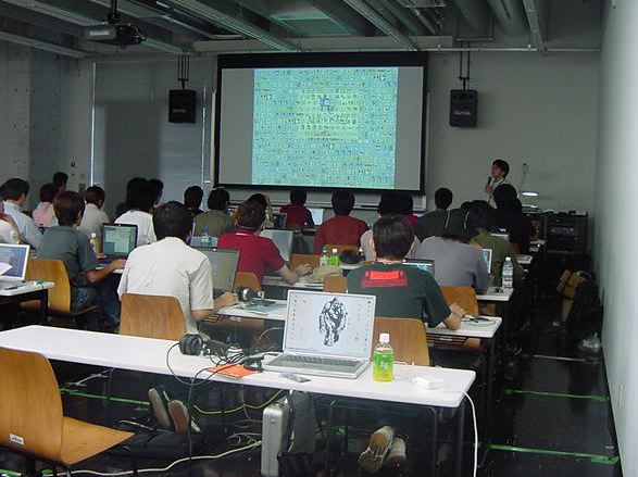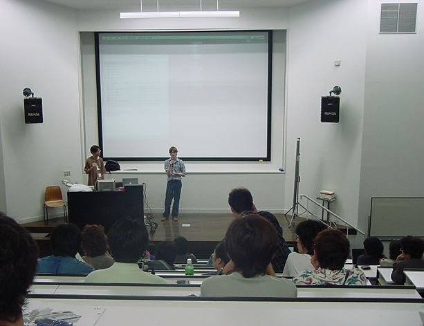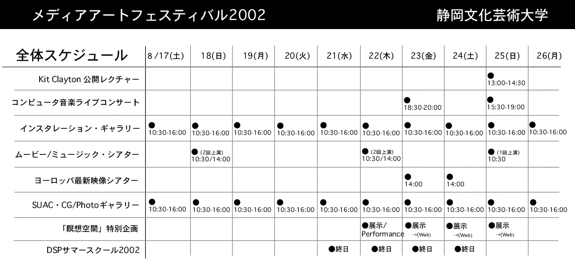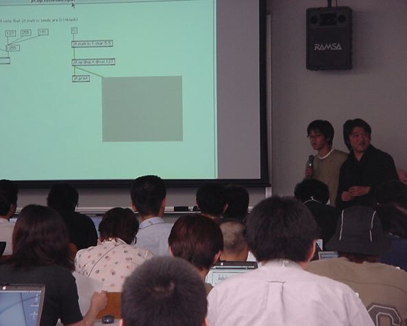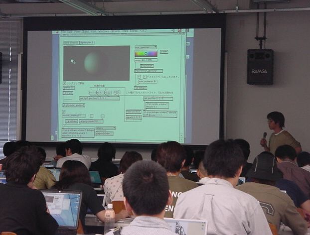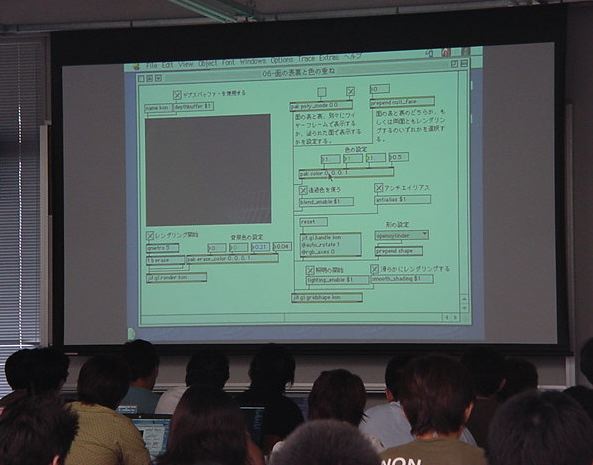 2018年8月6-9日の Maxサマースクール・イン・藝大2018 に参加することになりました。 その 開催概要 のページには、過去の「MSPサマースクール1999 - IAMAS」と「DSPサマースクール2000 - IAMAS」という歴史が書かれていましたが、実は2002年にSUAC(静岡文化芸術大学)のメディアアートフェスティバル(MAF2002)と併催ということで、開学して2年半のSUACでDSPSS2002が開催されていました。 Cycling'74でMaxの拡張機能"jitter"(ライヴグラフィクス処理、64次元マトリックス)を開発したプログラマでありメディアアーティストであるJoshua Kit Claytonが来日して、翌週に世界に発表する予定のjitterの開発最終版をカリフォルニアから持参して参加者に配布して、世界への発表に先駆けてjitterを開発者自身が解説する(通訳は小林茂、会場には後藤英・三輪眞弘・赤松正行など錚々たる顔ぶれ)、という画期的なイベントでした。