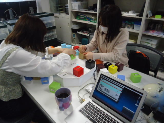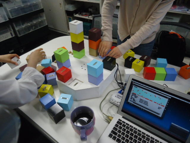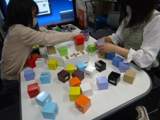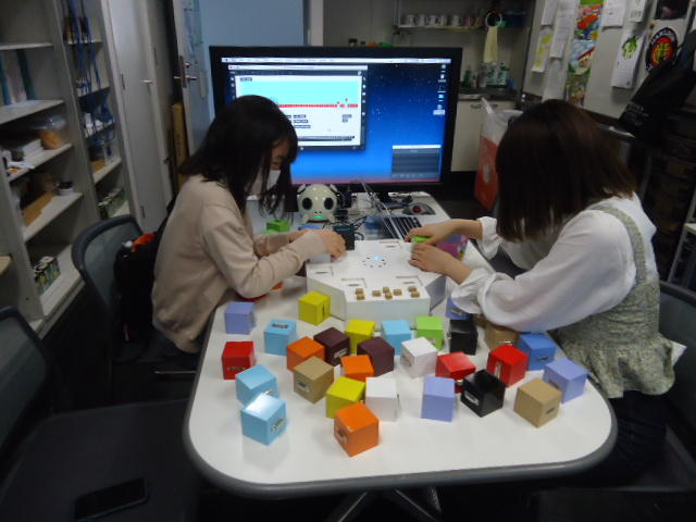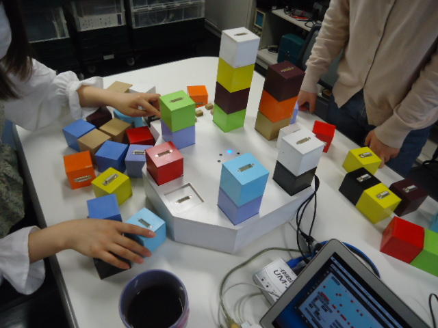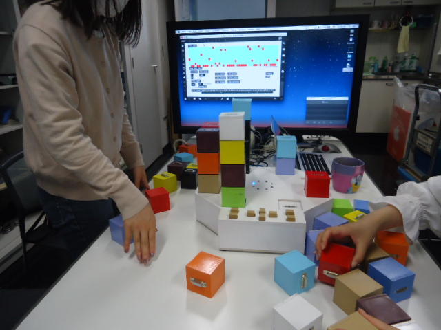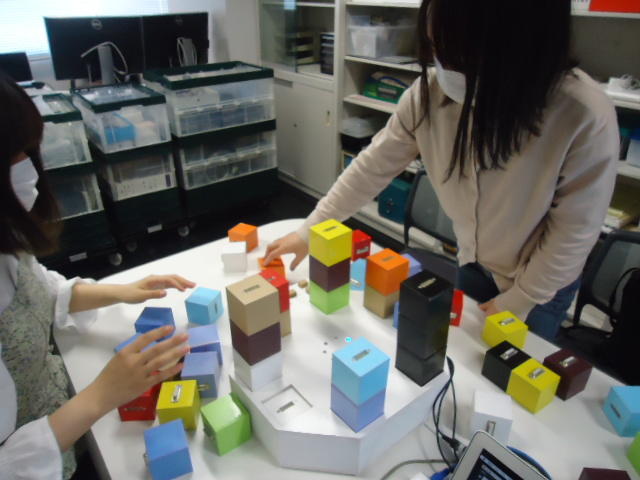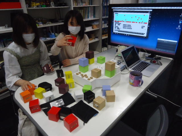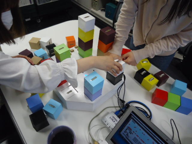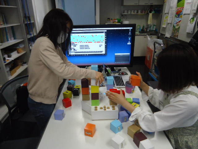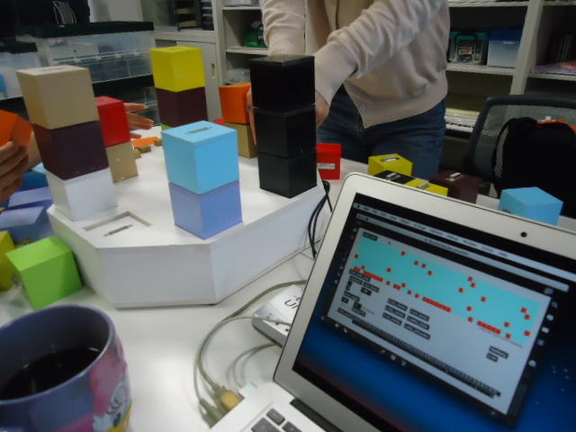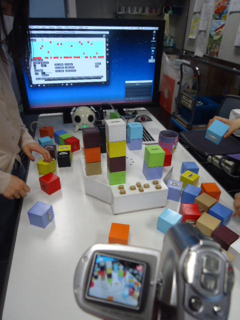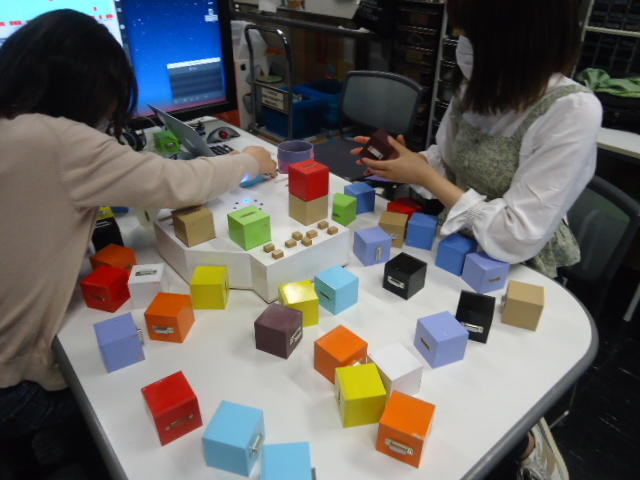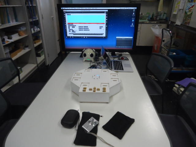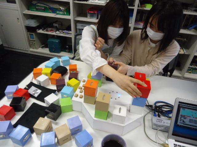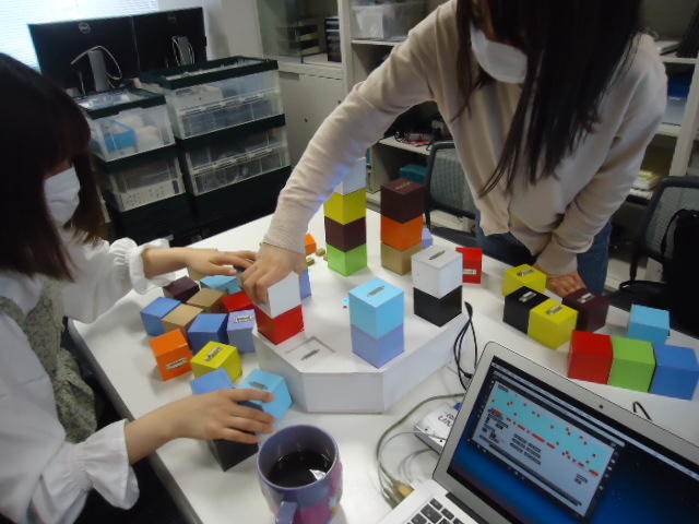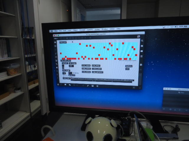 2人欠席連絡のあったこの日のゼミでは、ゼミ先輩のリュジュンヒー君(現在「チームラボ」で活躍中)が交換留学生だった4回生の時にゼミで制作したインスタレーション作品「カラーオーケストラ」の状態確認を行いました。