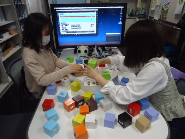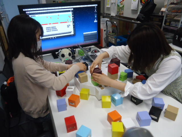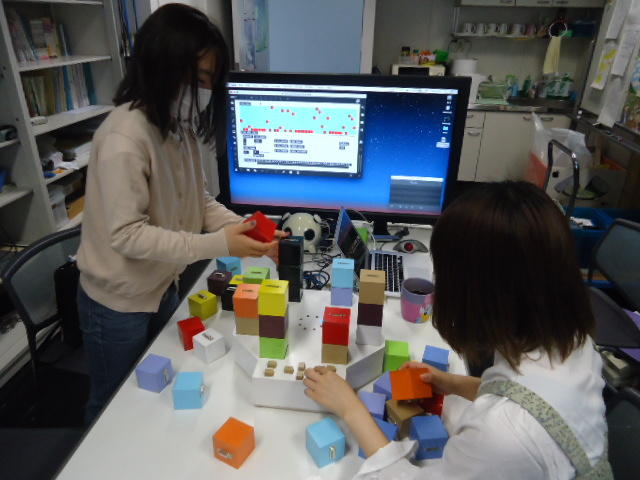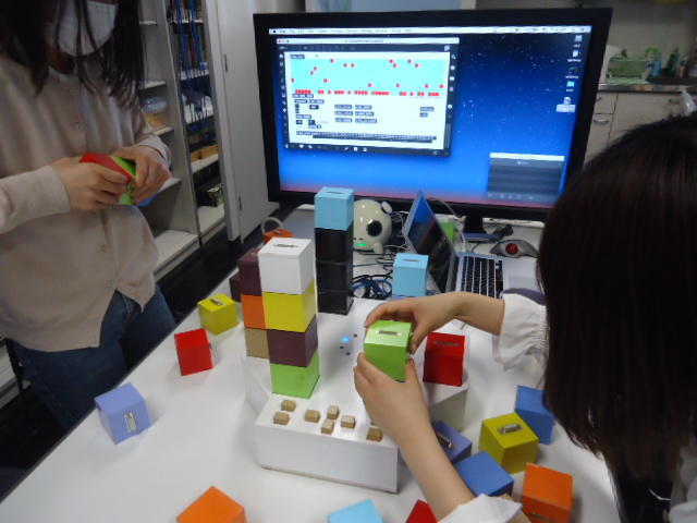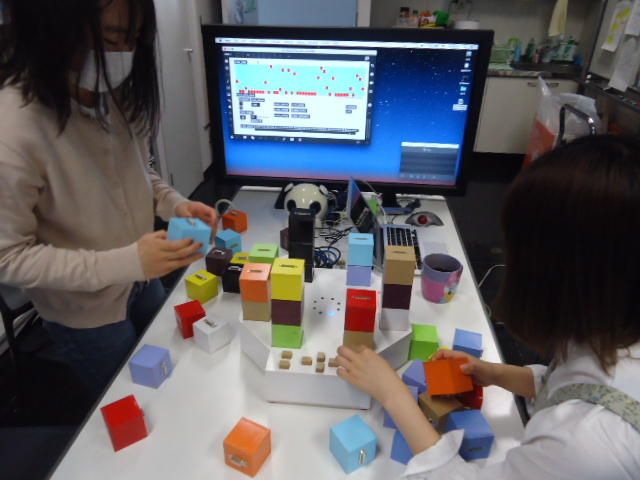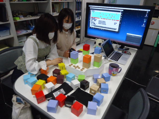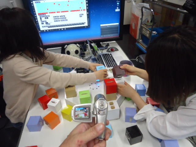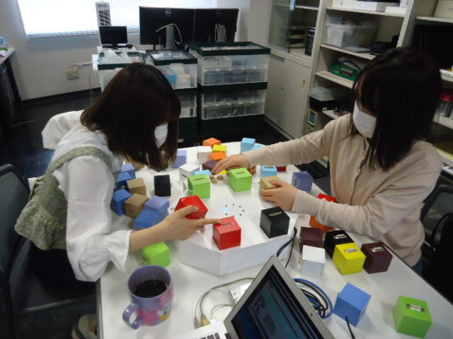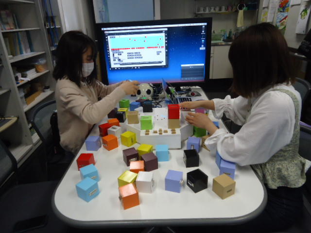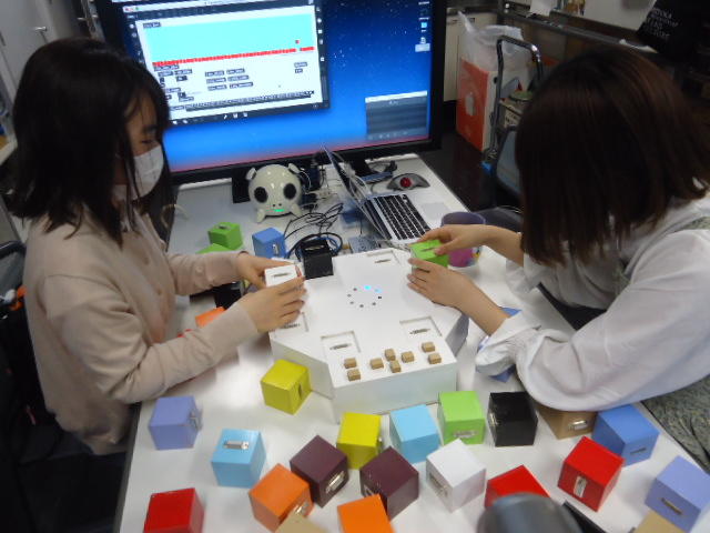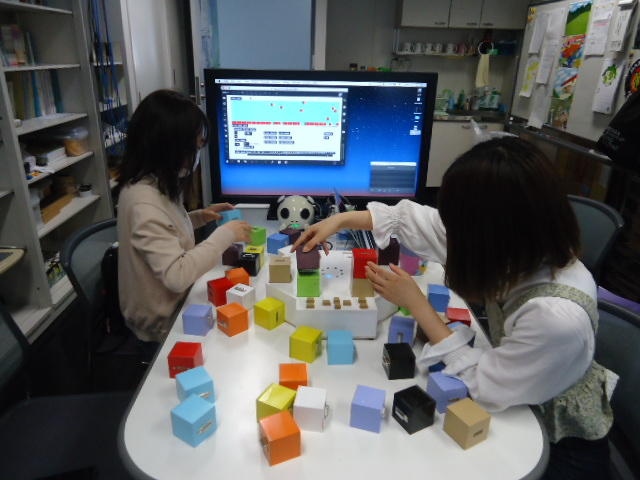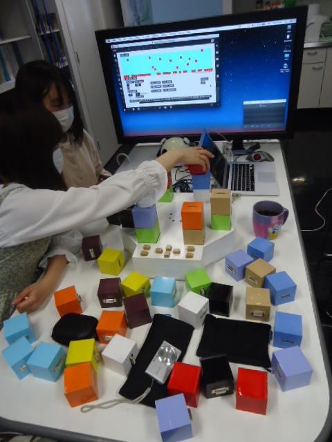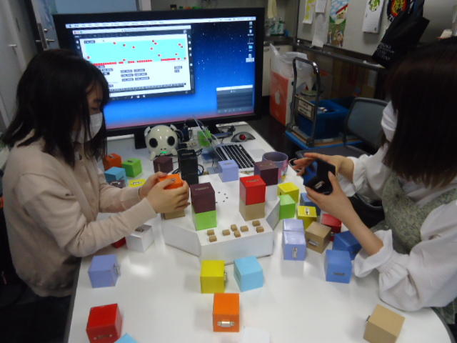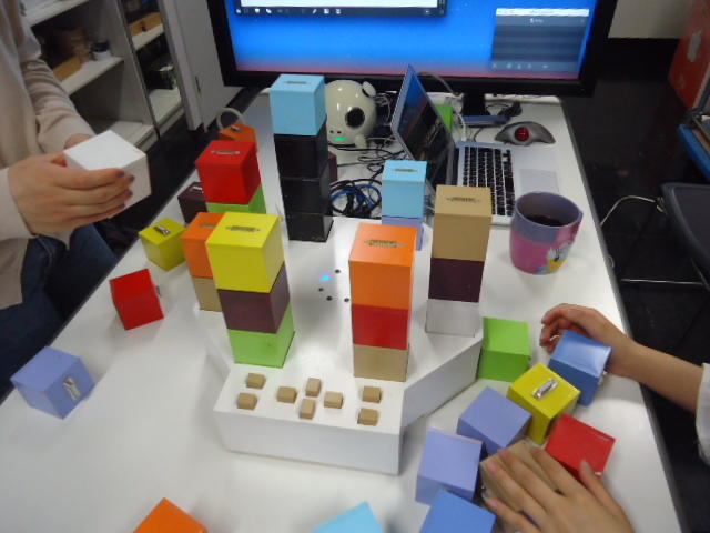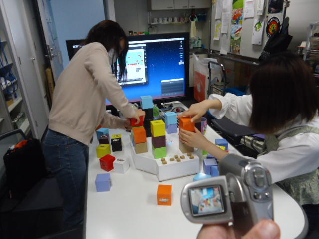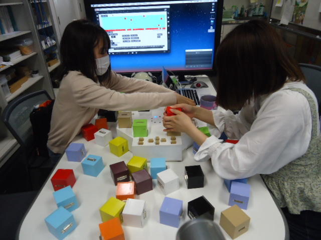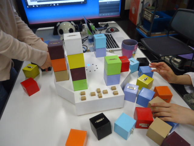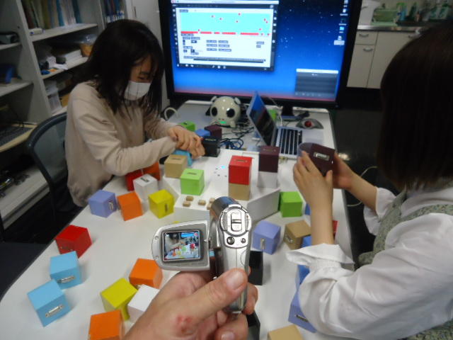 2人欠席連絡のあったこの日のゼミでは、ゼミ先輩のリュジュンヒー君(現在「チームラボ」で活躍中)が交換留学生だった4回生の時にゼミで制作したインスタレーション作品「カラーオーケストラ」の状態確認を行いました。
