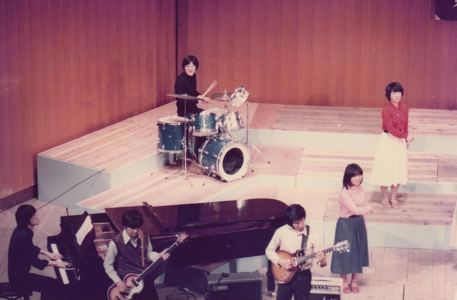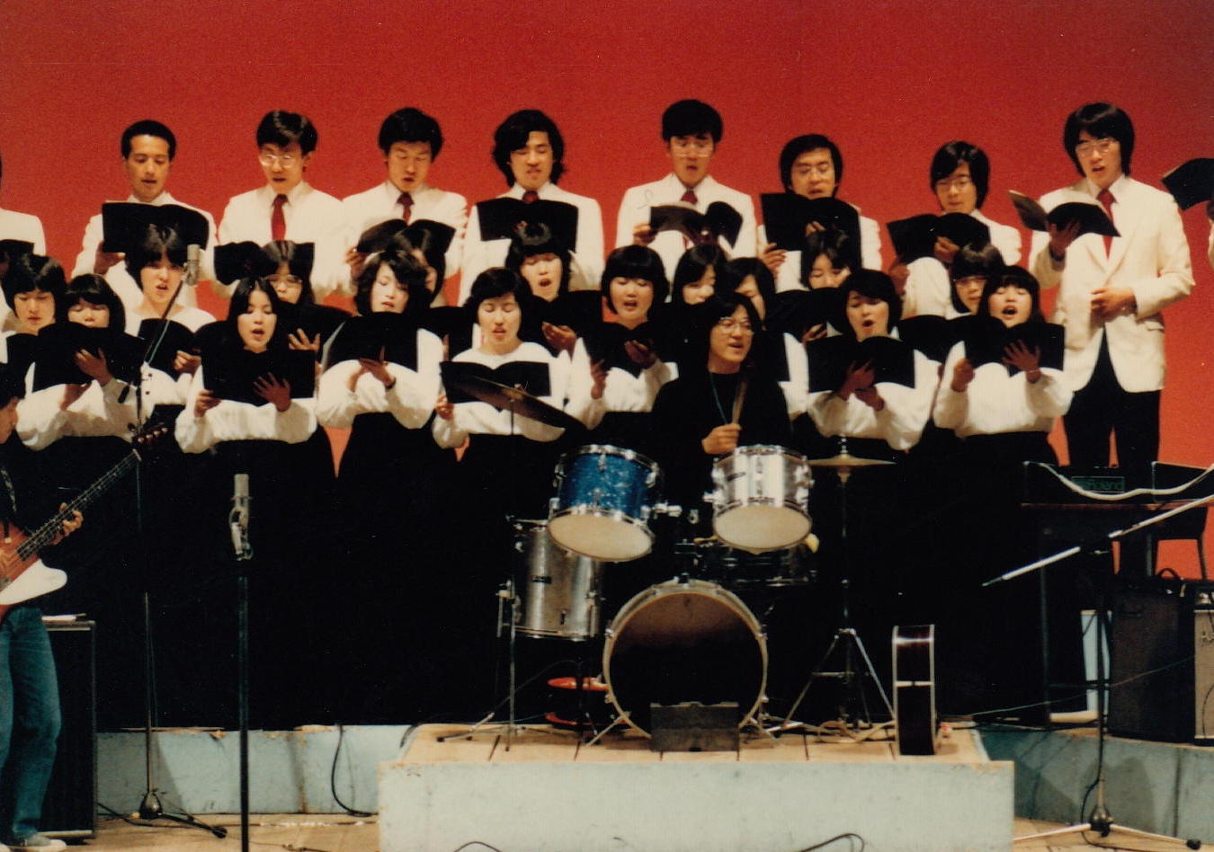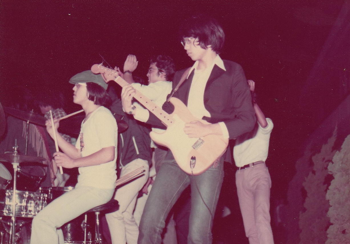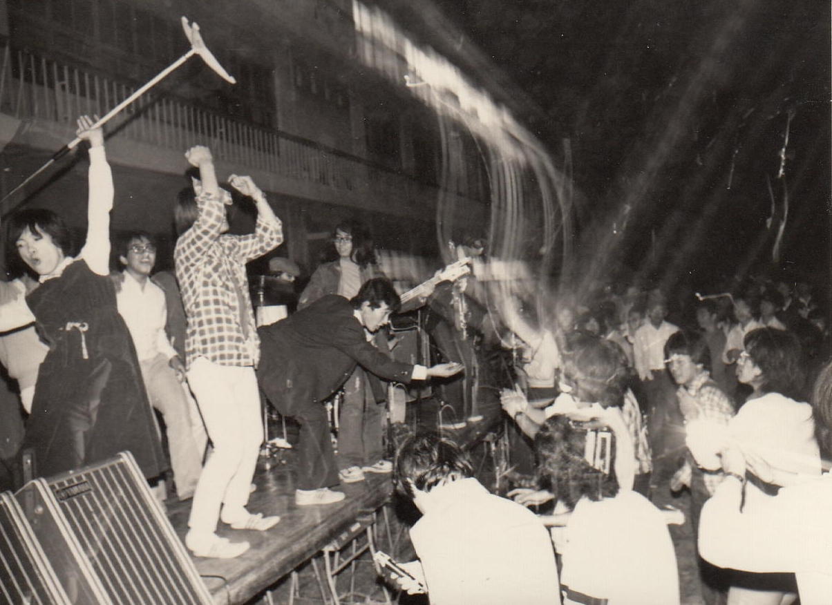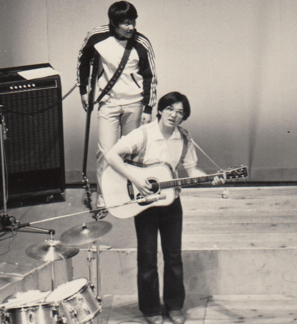 かつて膨大な写真を撮ってきたため、1106研究室のページには、 (元)写真少年の初歩テクニック とか 古き写真を発掘する(その2) とか 古き写真を発掘する(その3) とか 50年前の写真 とかのページで、その一部を置いてきました。 そしていよいよSUAC卒業に向けて2年計画の断捨離を開始して、まず1106研究室から膨大な資材を持ち帰る自宅の自室を空っぽにする断捨離を先行させて、相当に昔のアルバムや手元に残っていた紙媒体の写真から抜粋して全てスキャナで取り込み、「紙」を廃棄しました。 ここではそんな中から、SUAC軽音の顧問でもあるので昔の「バンド」活動の写真、そしてつい先日 「合唱曲」作曲集 の資料集も作ったので昔の「合唱(指揮)」活動の写真などを発掘してみました。 いやいや、若かったなぁ。(^_^;)水戸一高・軽音