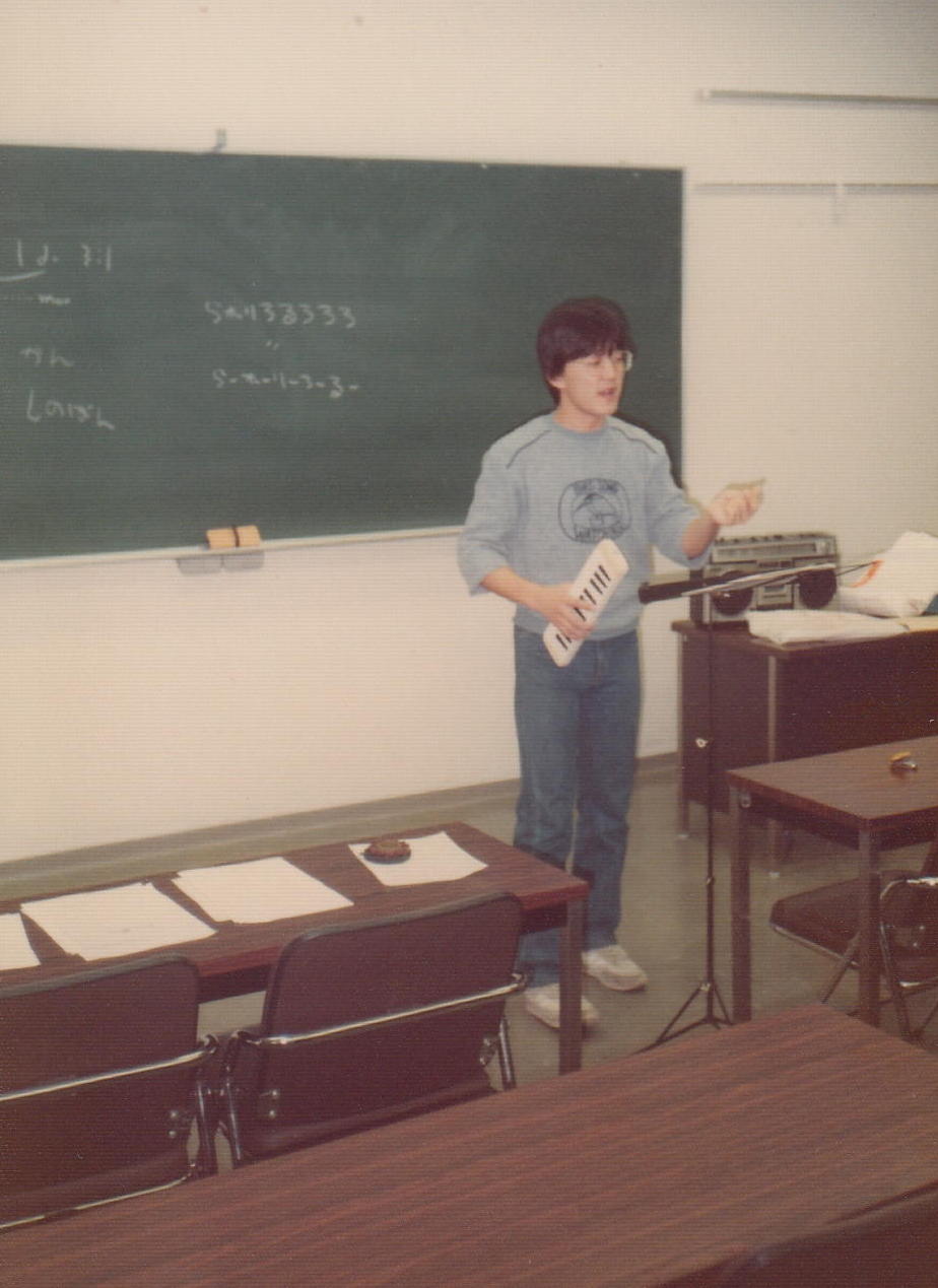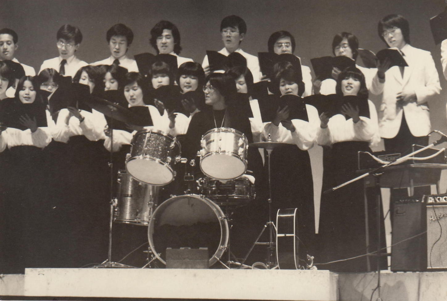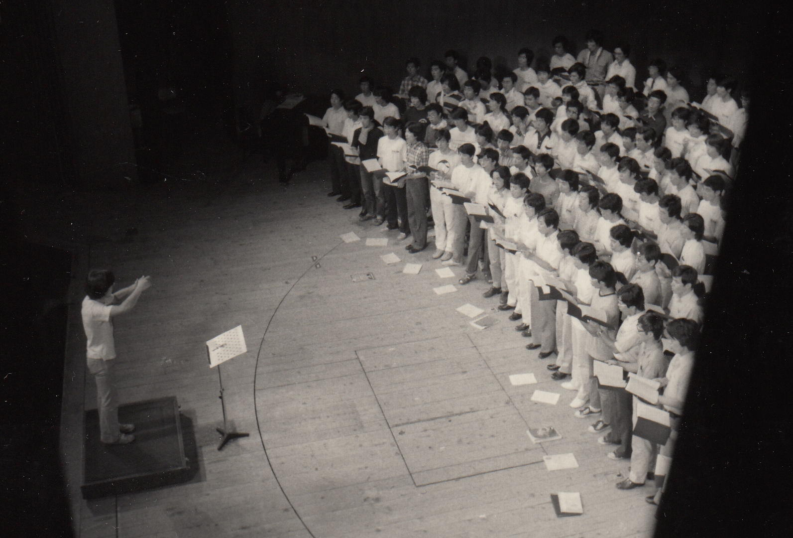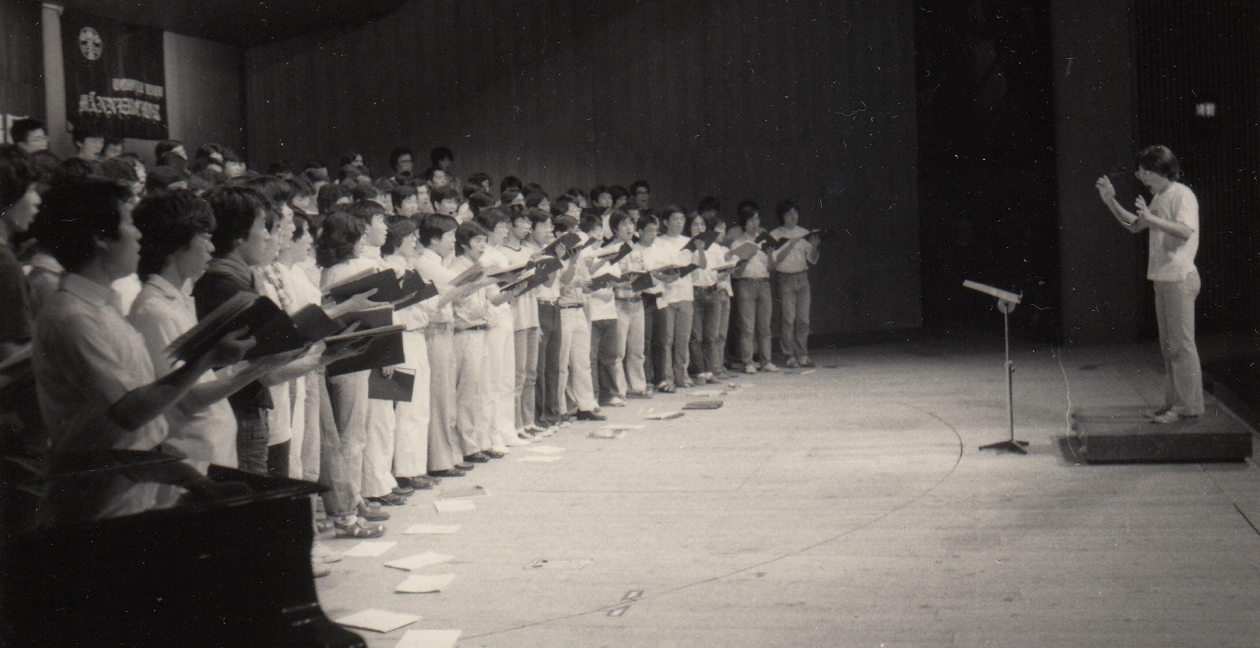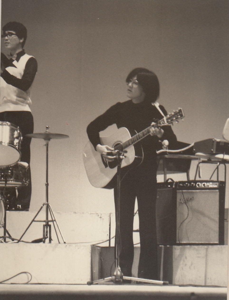 かつて膨大な写真を撮ってきたため、1106研究室のページには、 (元)写真少年の初歩テクニック とか 古き写真を発掘する(その2) とか 古き写真を発掘する(その3) とか 50年前の写真 とかのページで、その一部を置いてきました。 そしていよいよSUAC卒業に向けて2年計画の断捨離を開始して、まず1106研究室から膨大な資材を持ち帰る自宅の自室を空っぽにする断捨離を先行させて、相当に昔のアルバムや手元に残っていた紙媒体の写真から抜粋して全てスキャナで取り込み、「紙」を廃棄しました。 ここではそんな中から、SUAC軽音の顧問でもあるので昔の「バンド」活動の写真、そしてつい先日 「合唱曲」作曲集 の資料集も作ったので昔の「合唱(指揮)」活動の写真などを発掘してみました。 いやいや、若かったなぁ。(^_^;)水戸一高・軽音