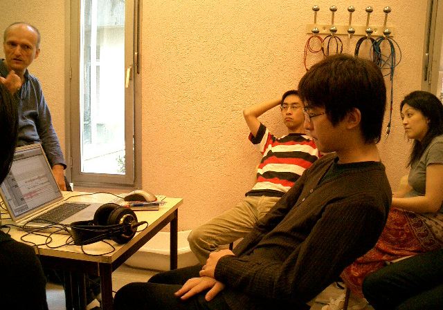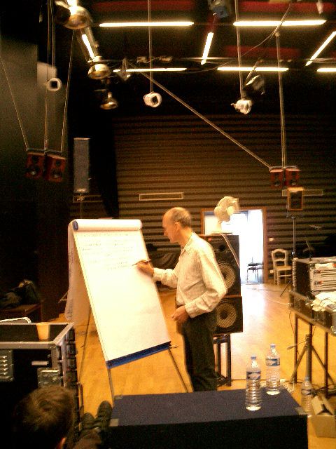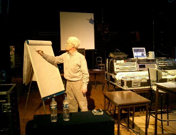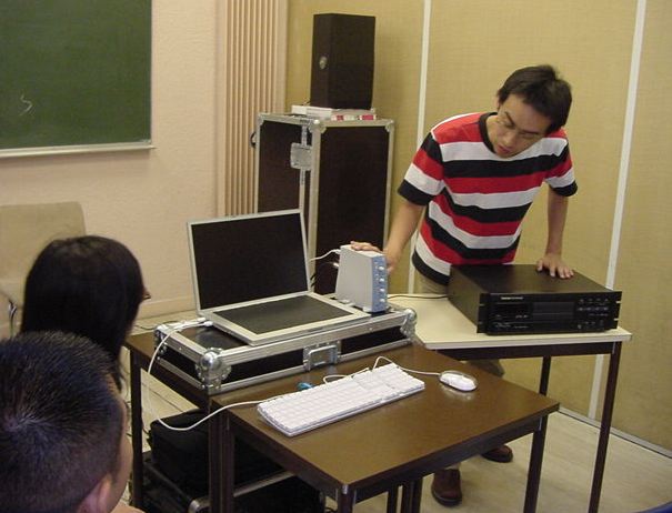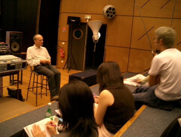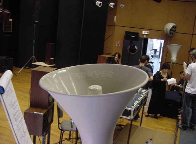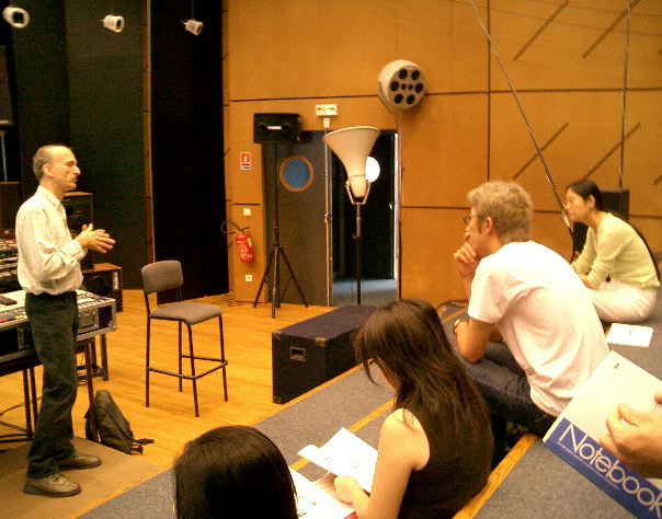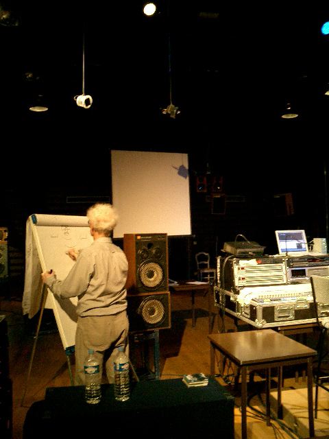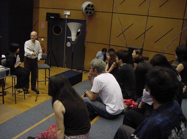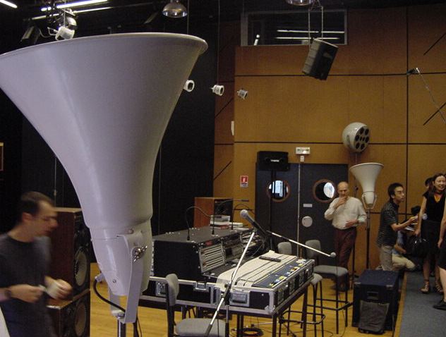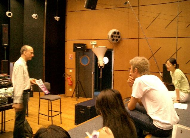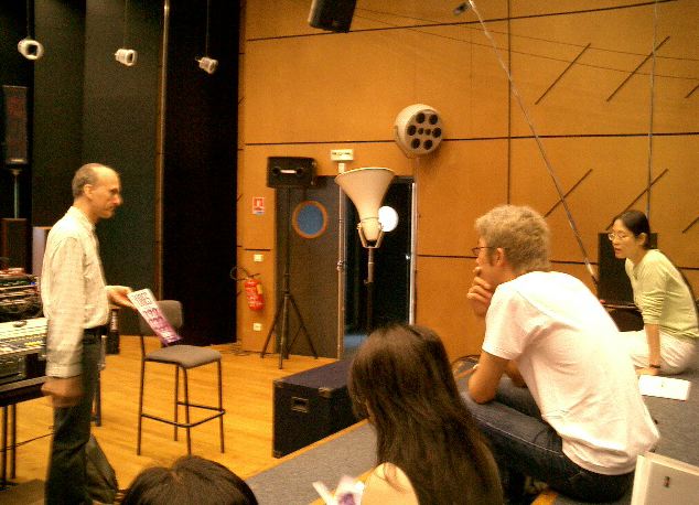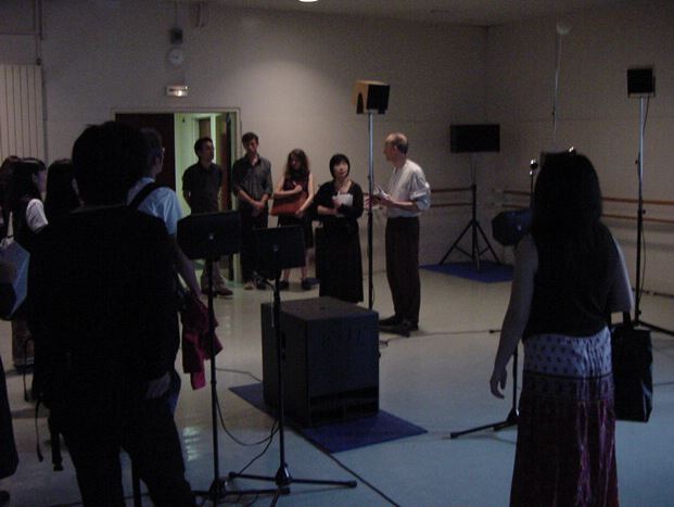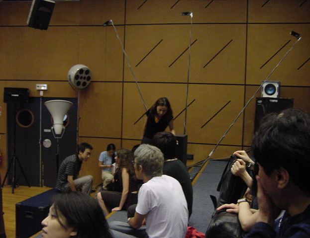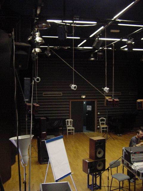 - このページは、「サウンドデザイン」の講義での質問に関連して、長嶋が2004年7-9月に欧州(パリ・アムステルダム・リンツ)に行った Sabbatical2004 のうち、「2004年8月9日(月)」から「2004年8月22日(日)」の部分、MOTUSワークショップに参加した期間の写真のうち、アクースモニュームに関するものを並べる目的で作りました