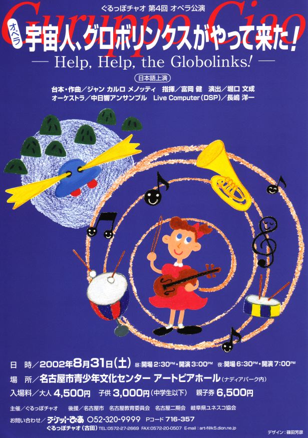 - オペラ"Help! Help! Globolinks"(電子音響パートの作曲)、作曲2002年、 2002年8月31日(アートピアホール、指揮 : 富岡健) ★ ★