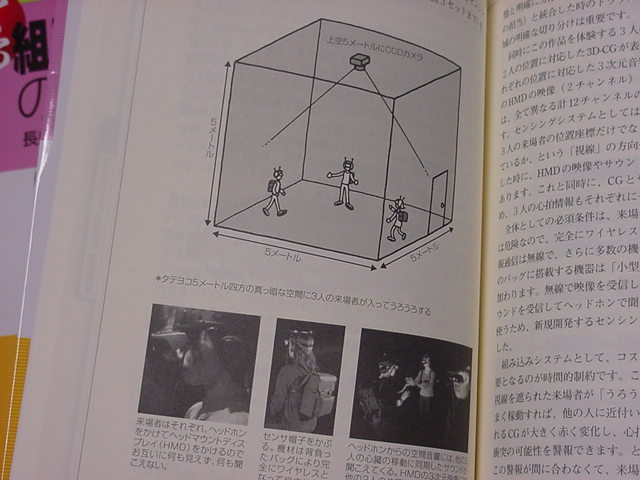 - 2000年 『電気学会・電子情報通信学会・情報処理学会・照明学会・映像情報メディア学会・日本音響学会各東海支部・電気設備学会中部支部・IEEE名古屋支部連合大会シンポジウム』で発表/公演した作品"Wandering Highlander"のために製作したシステムの開発 ★ ★ ★