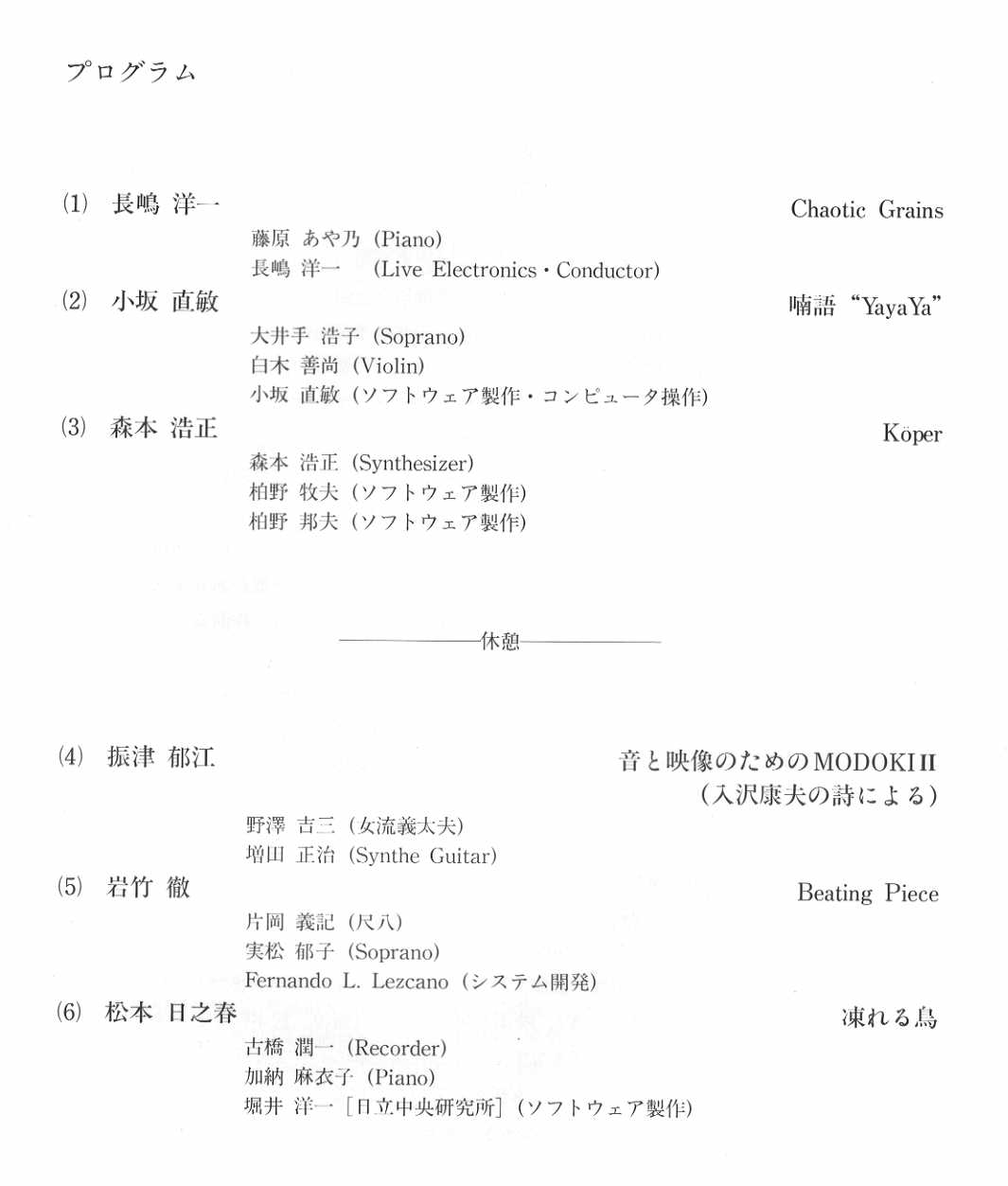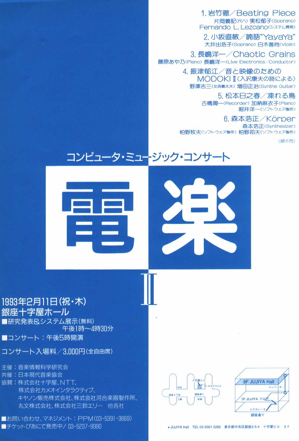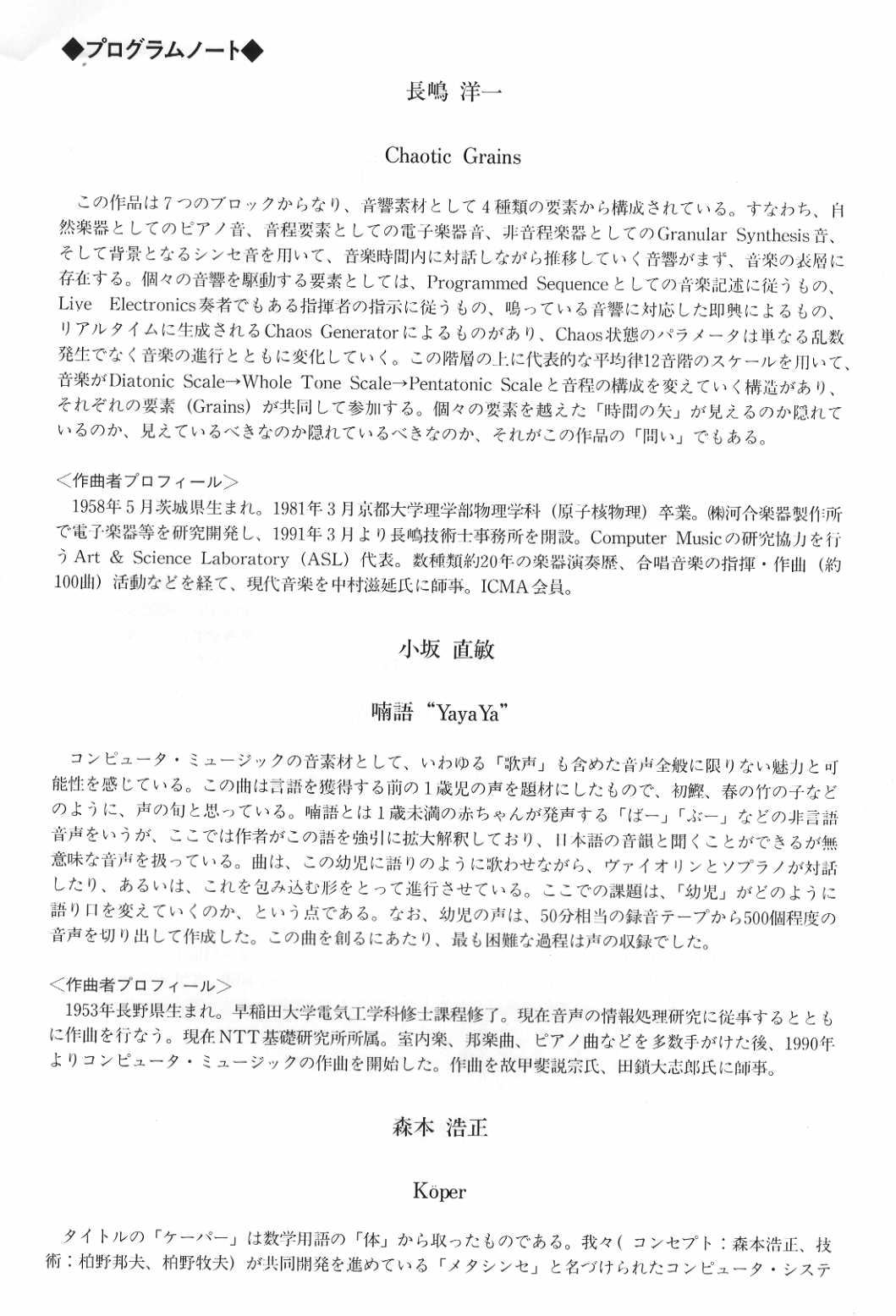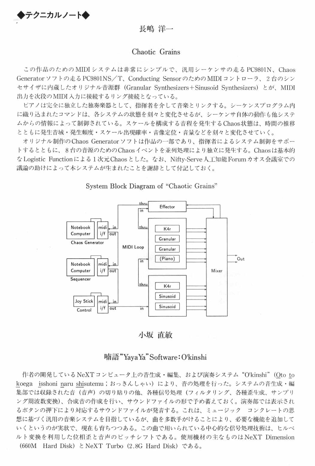 - 1993年 「電楽II」で初演した"Chaotic Grains"のシステム開発(東京・十字屋ホール) ★ ★