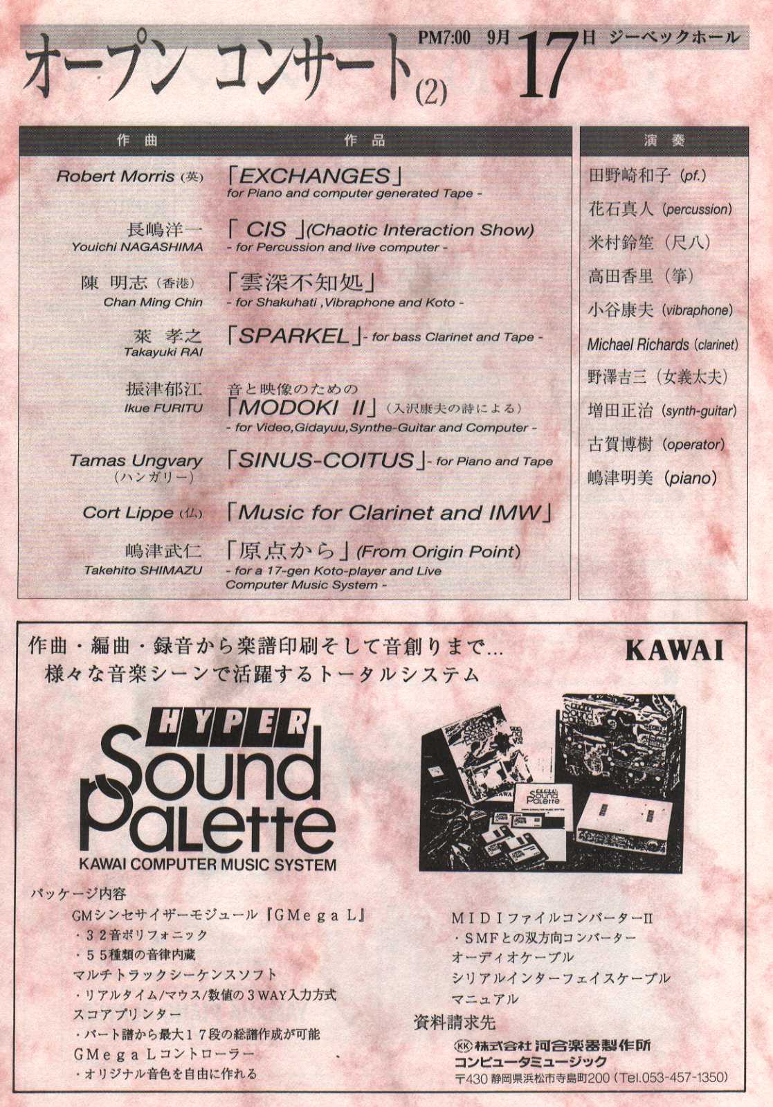 - 1991年 [HYPER]を使用した中村氏の作品が東京現代音楽祭にて演奏される(東京・音楽之友社ホール)