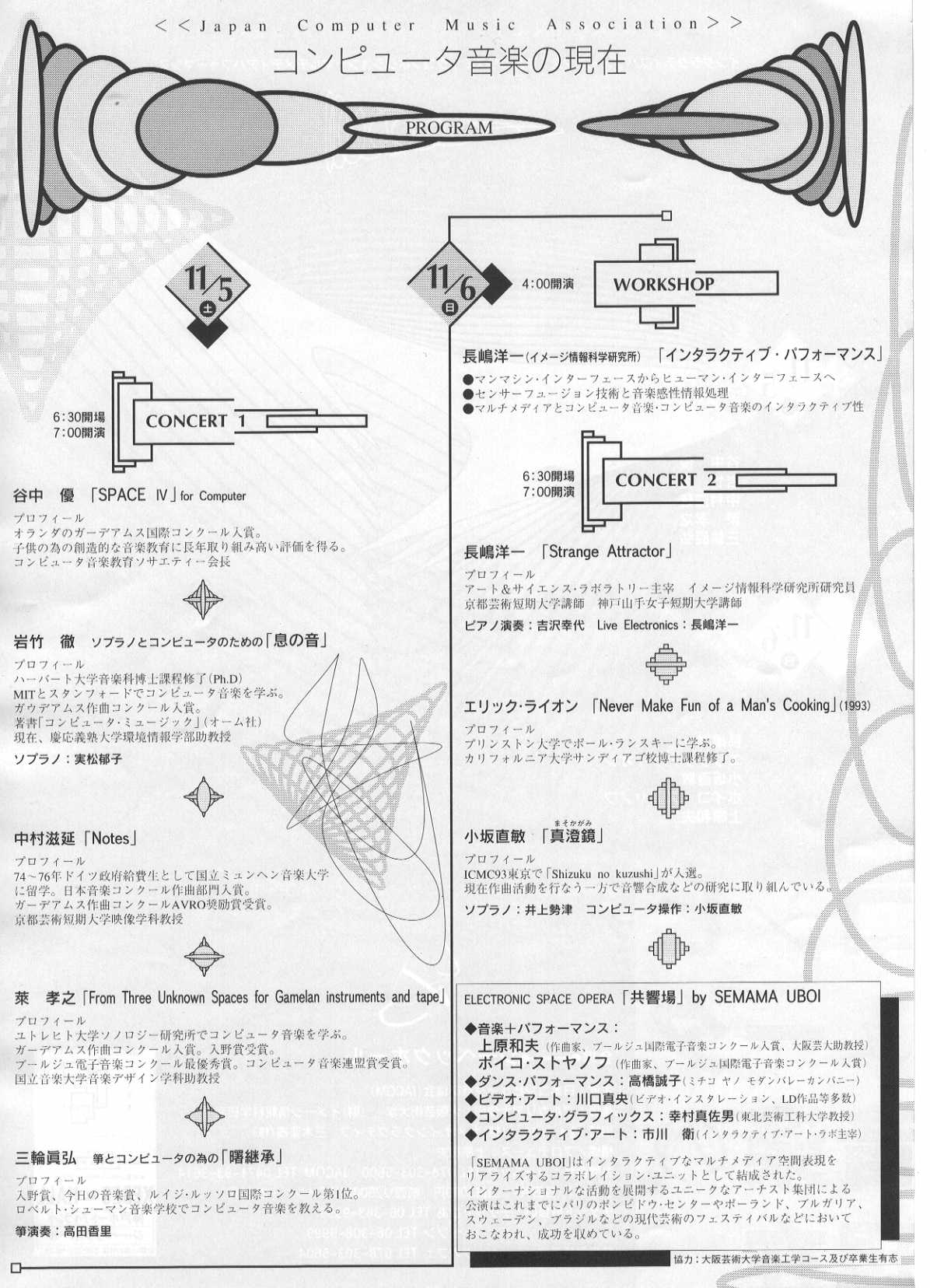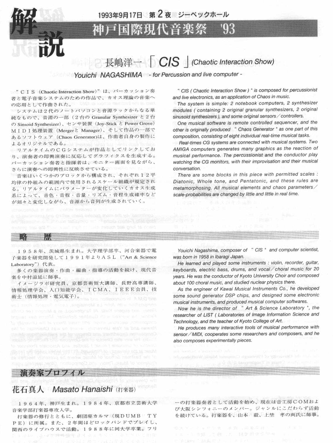 - 1993年 「IAKTAワークショップ」で初演した"CIS(Chatic Interaction Show)"のシステム開発(大阪・ライフホール) ★ ★ ★