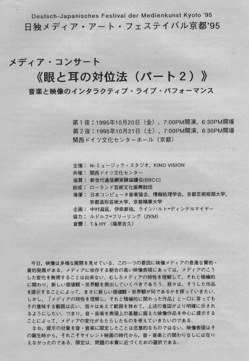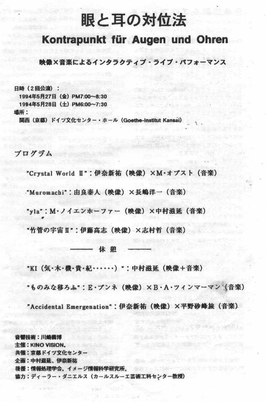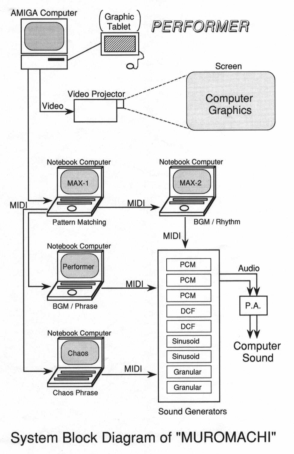 - 1994年 「眼と耳の対位法」で初演した"Muromachi"のシステム開発(京都・関西ドイツ文化センターホール) ★ ★ ★