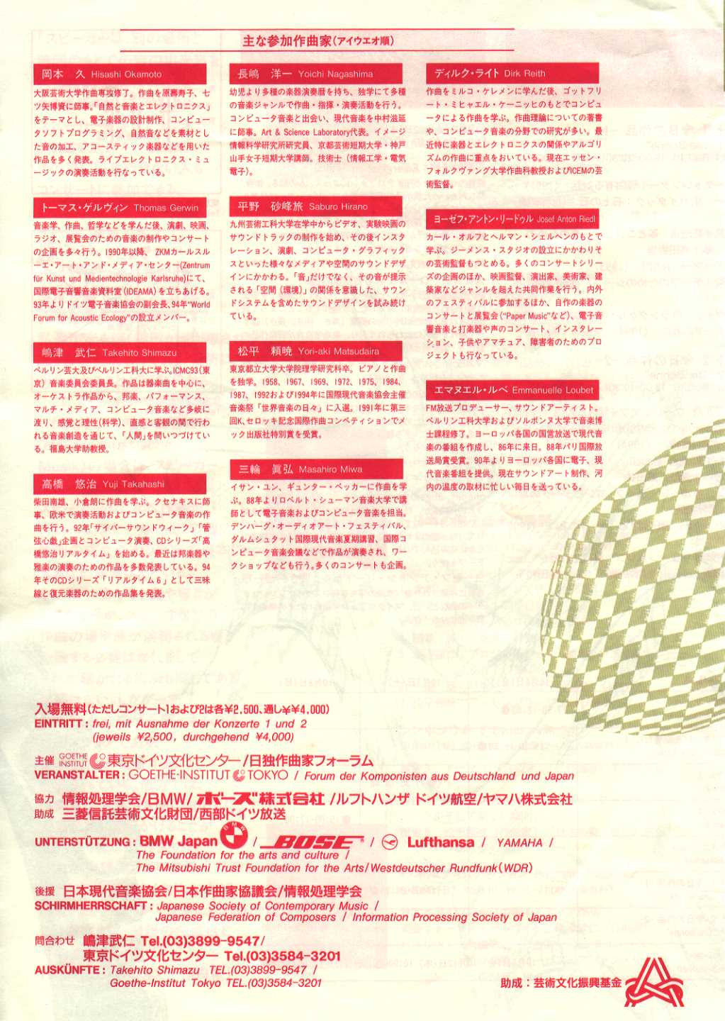 - 1995年 「音・電子メディア」で初演した"Virtual Reduction"のシステム開発(東京・ドイツ文化センターホール) ★ ★
