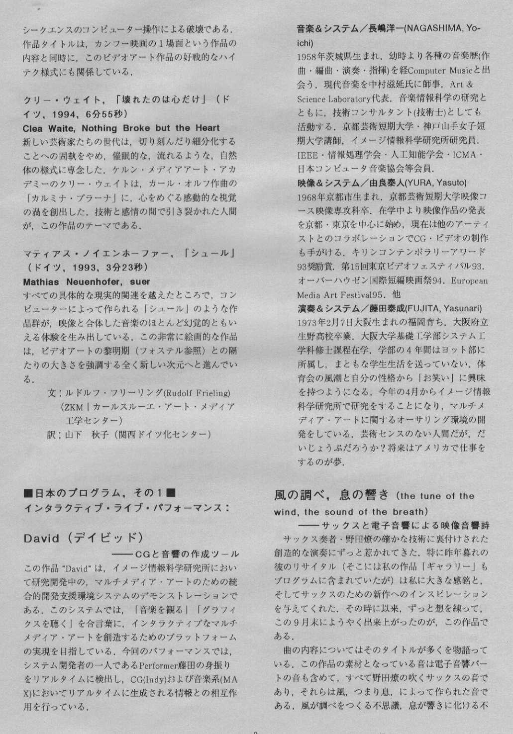 - 1995年 「日独メディア・アート・フェスティバル」で初演した"David"のシステム開発(京都・関西ドイツ文化センターホール) ★ ★