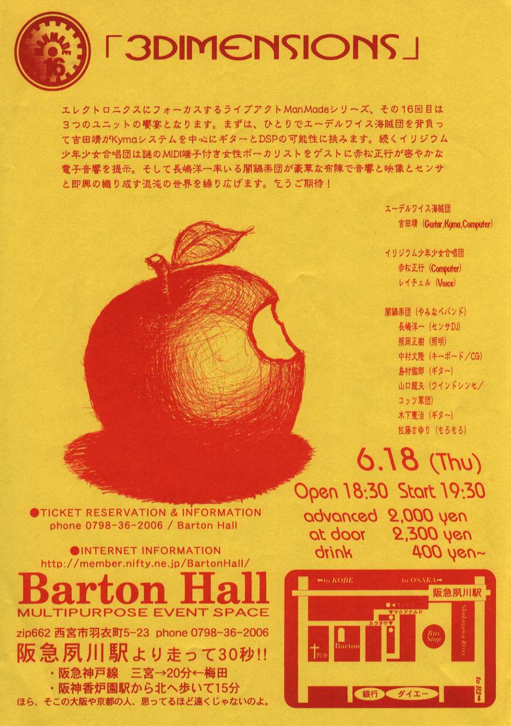 - ライブ出演"闇鍋楽団(やみなべバンド)"、作曲1998年 、 1998年6月18日『3DIMENSIONS』 (バートンホール、パフォーマンス : 闇鍋楽団 [長嶋洋一+照岡正樹+中村文隆+島村徹郎+山口龍夫+木下憲治+佐藤さゆり] ) ★