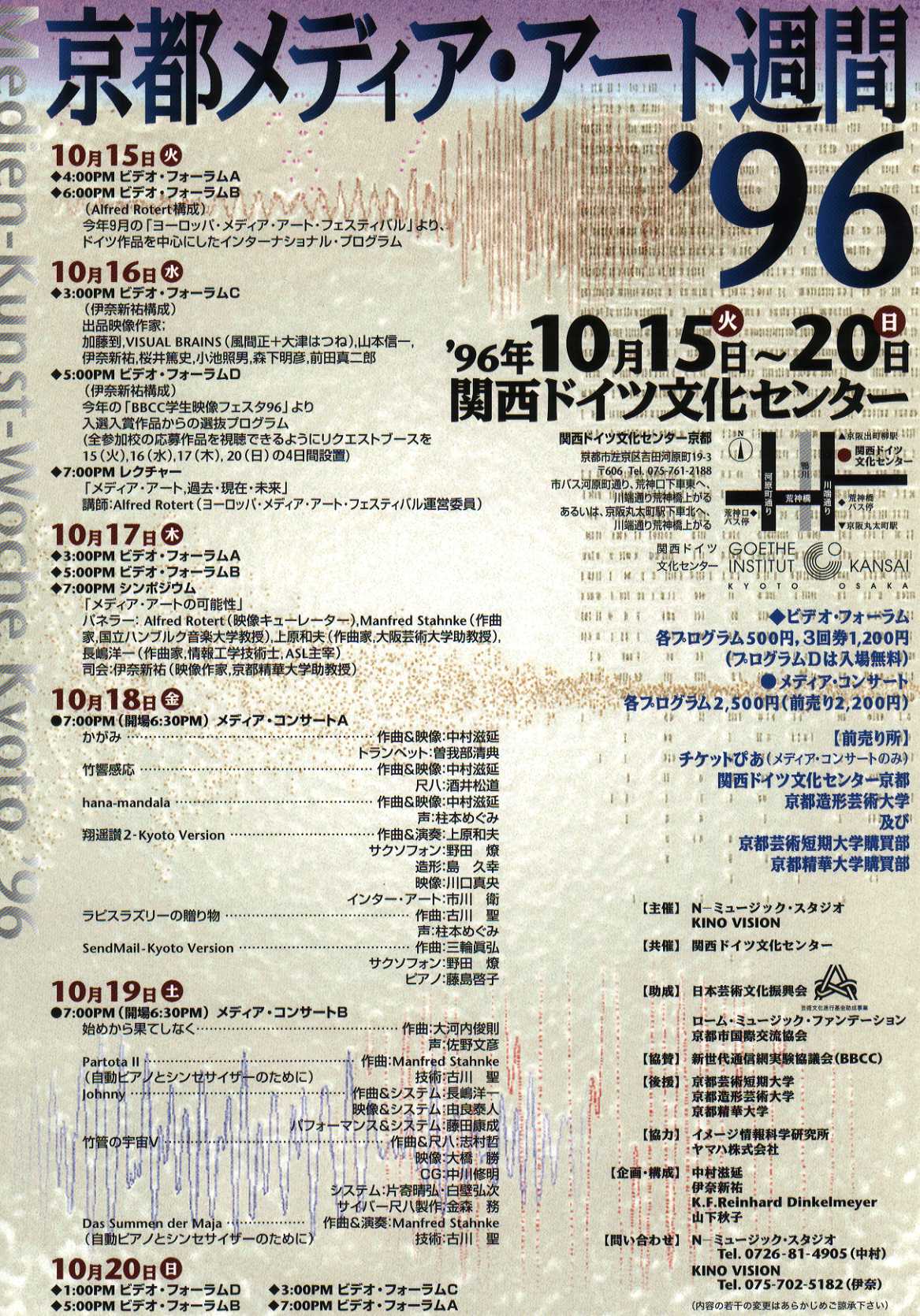 - 1996年 「京都メディア・アート週間」で初演した"Johnny"のシステム開発(京都・関西ドイツ文化センターホール) ★ ★