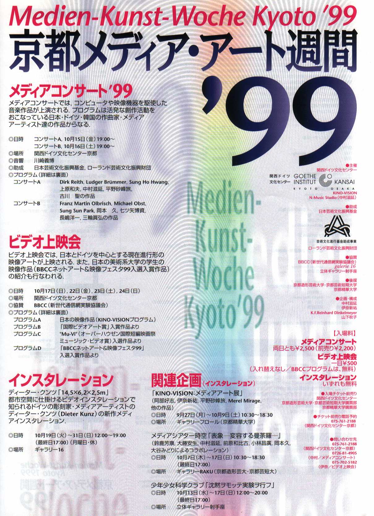 - 1999年 「日独メディア・アート・フェスティバル」で初演された"Bio-Cosmic Strom ver 0.7"の筋電センサMiniBioMuse-IIとシステム開発(京都・関西ドイツ文化センターホール) ★ ★ ★ ★ ★