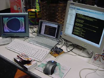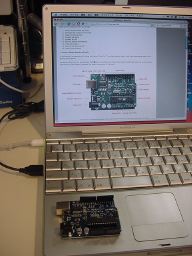 2008年5月29日(木)の 音楽情報科学研究会 でインスタレーション事例と Propeller について発表したところ、 「プラットフォームとして最近はArduinoが有名なのでは」とのコメントをもらった。 これは知らなかったが、翌日、京都精華大の平野先生から、 ここ だ、とのメイルが届いて、さっそくサイトに行ってみた。 どうやらGAINERと同じような1チップCPUを載せた、スタンドアロンのボードらしい。 さっそく業者に、いくつか発注してみた。 注文したのは、の3つである。 写真を見ると、なんともイタリア的である。 さてさて、どんなものだろうか。