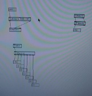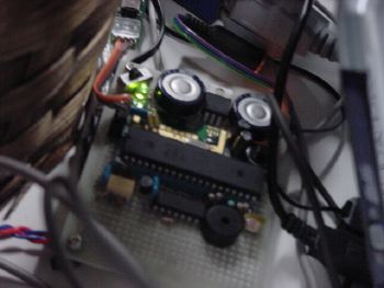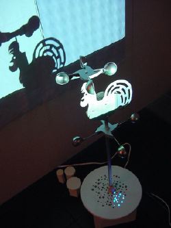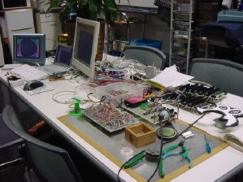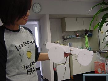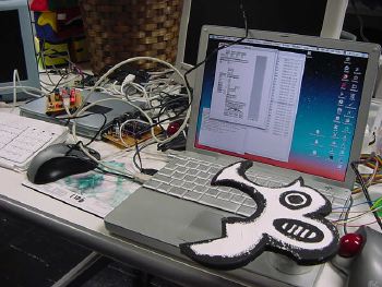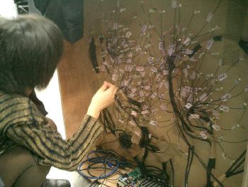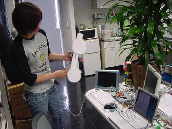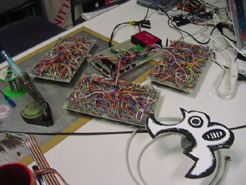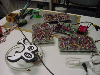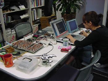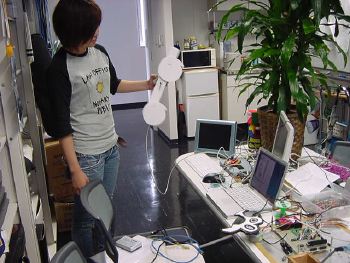 これは4回生の岡元さんの制作プロジェクトのインスタレーション作品で使う予定の、 「ピリピリ」MIDI制御マシン。 ネタばれするので詳細は秘密。(^_^;)