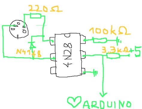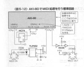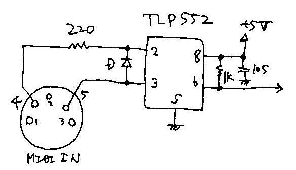 そこで余勢をかって、MIDI受信を調べてみることにした。 ここ には、なかなかファンキーな回路図があった。