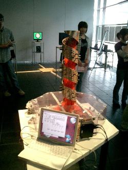 これは、オープンキャンパスで最初のバージョンのお披露目となる、 オリジナルのインスタレーションのグラフィクス開発用の実験機。 Propellerである。 本番ではPropellerを12個、搭載する予定である。