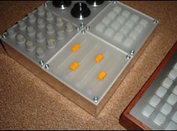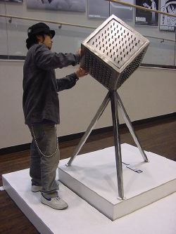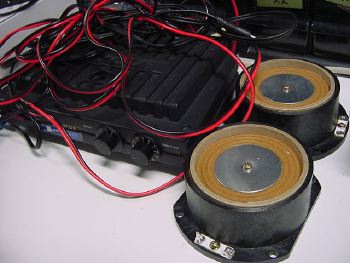 これは、これは4回生の松永さんの制作プロジェクトに関して「超低音で不快にさせる効果」の実験のために、 ストックしていた振動スピーカとアンプ。 作品には使わないかもしれないが、別にちょっと企画を考えているところ。
