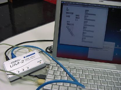 また、 ここ を見ると、ちゃんとMIDI outとMIDI inのサンプルがあるようである。 これはさっそく、試してみよう。 MIDIを出したり受けたりというのは、まぁシリアル通信の基本だけれど、 そこそこのトラフィックでもデータを落とさずに、きちんと「受信→バッファリング→解釈→バッファリング→送信」するかどうか、 これは基本的なテストとなる。
