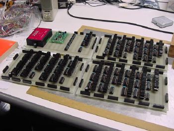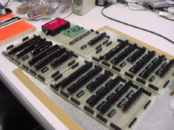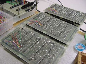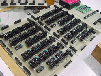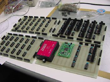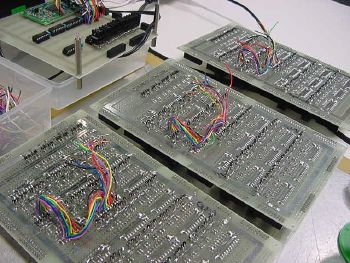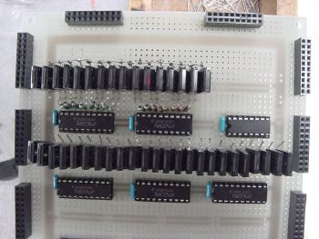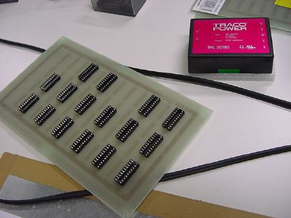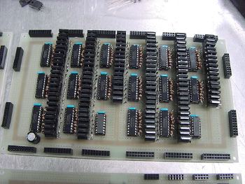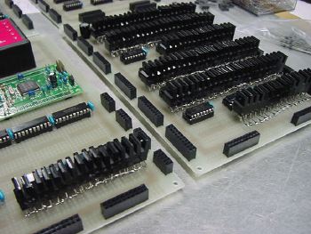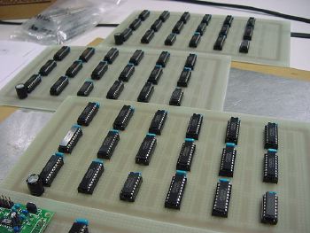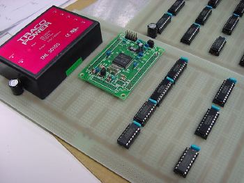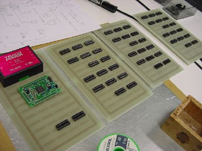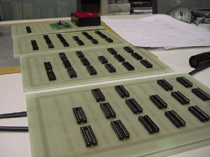 そして、とりあえず3枚の同じ基板と、マスターとなる基板(+5V6Aの電源モジュールも搭載)に、 およそのICソケットが並んだ。